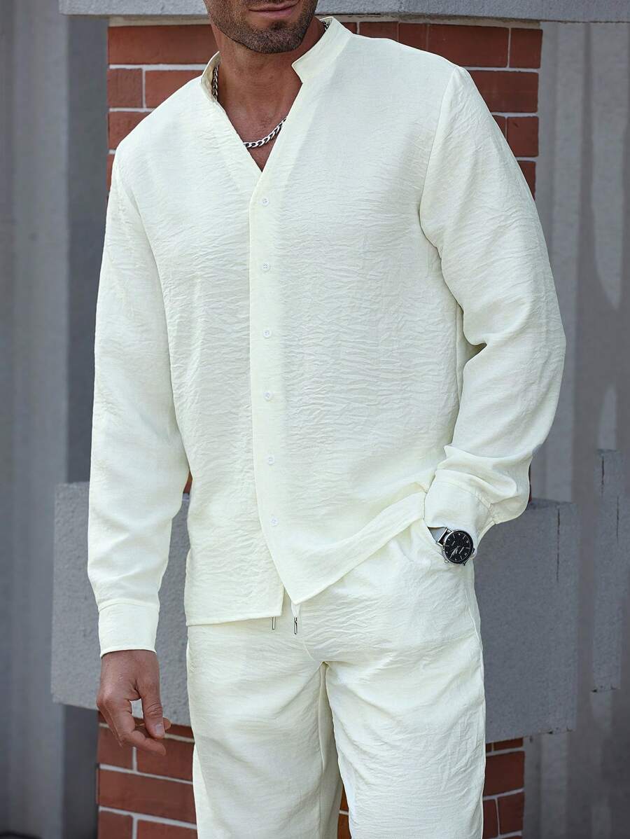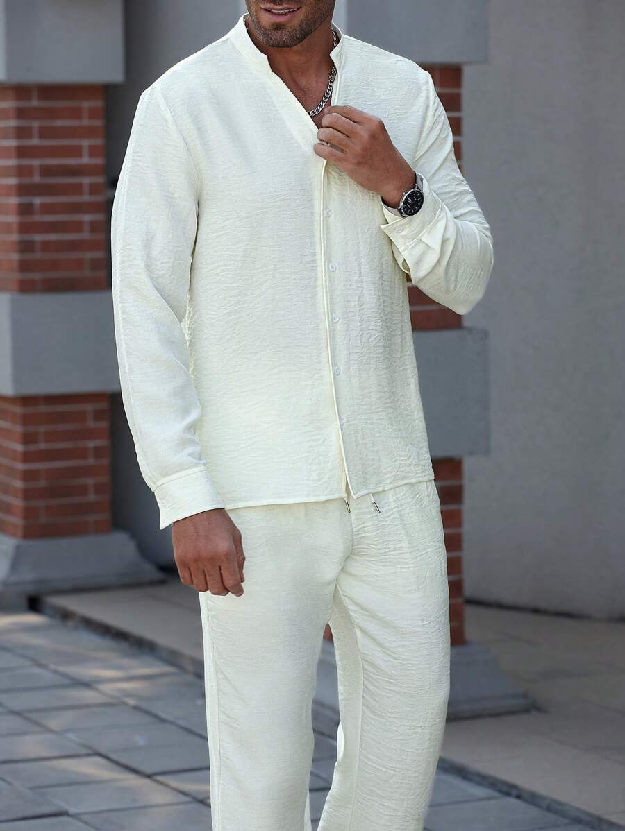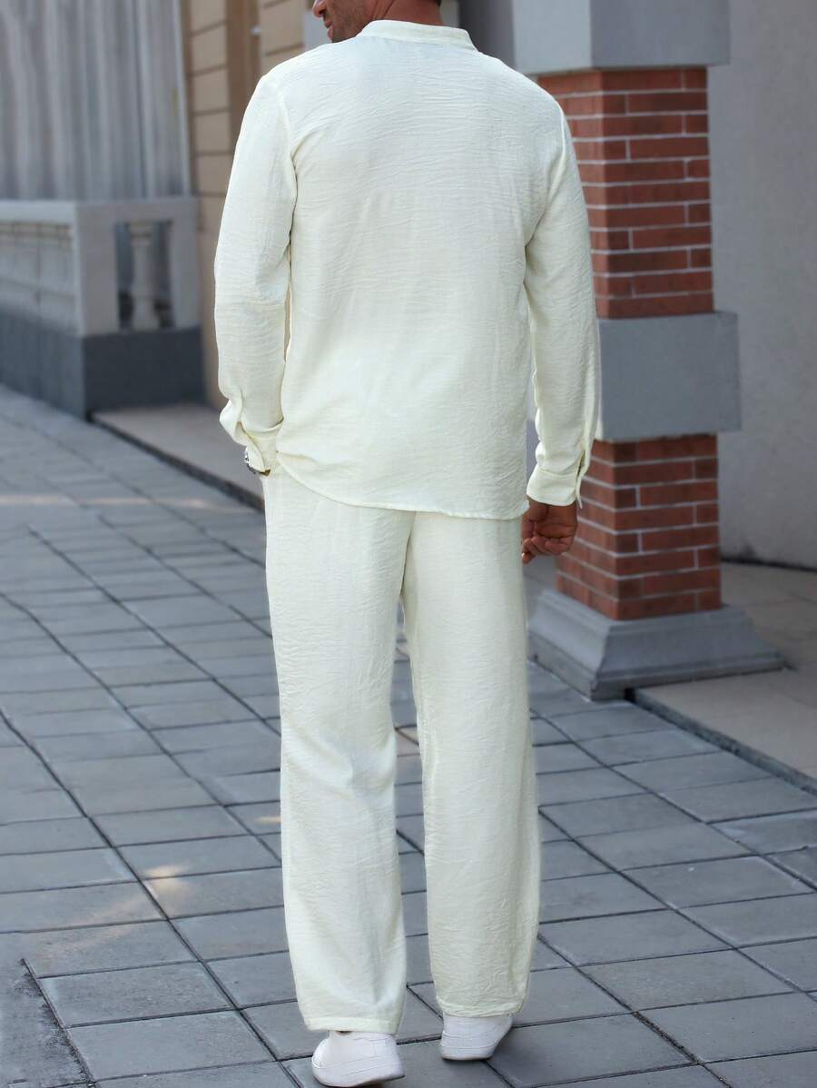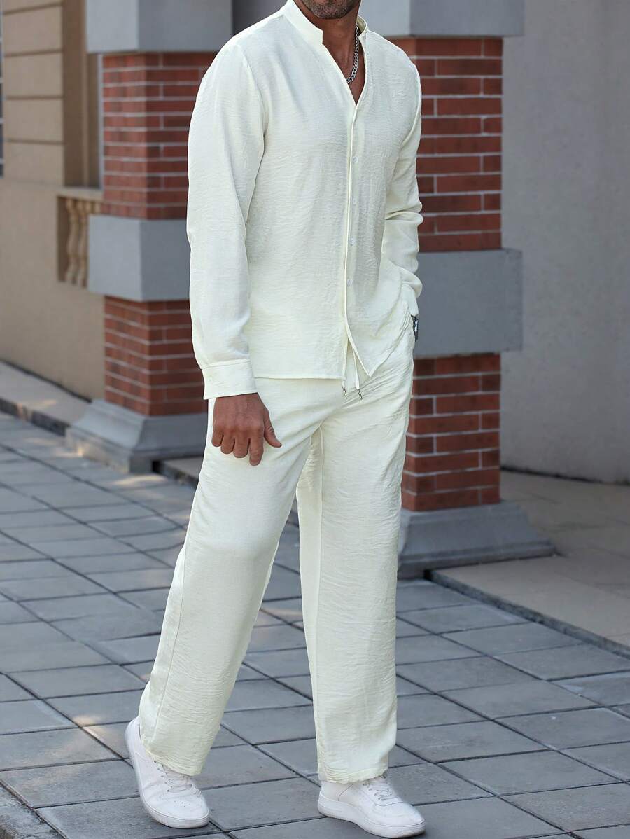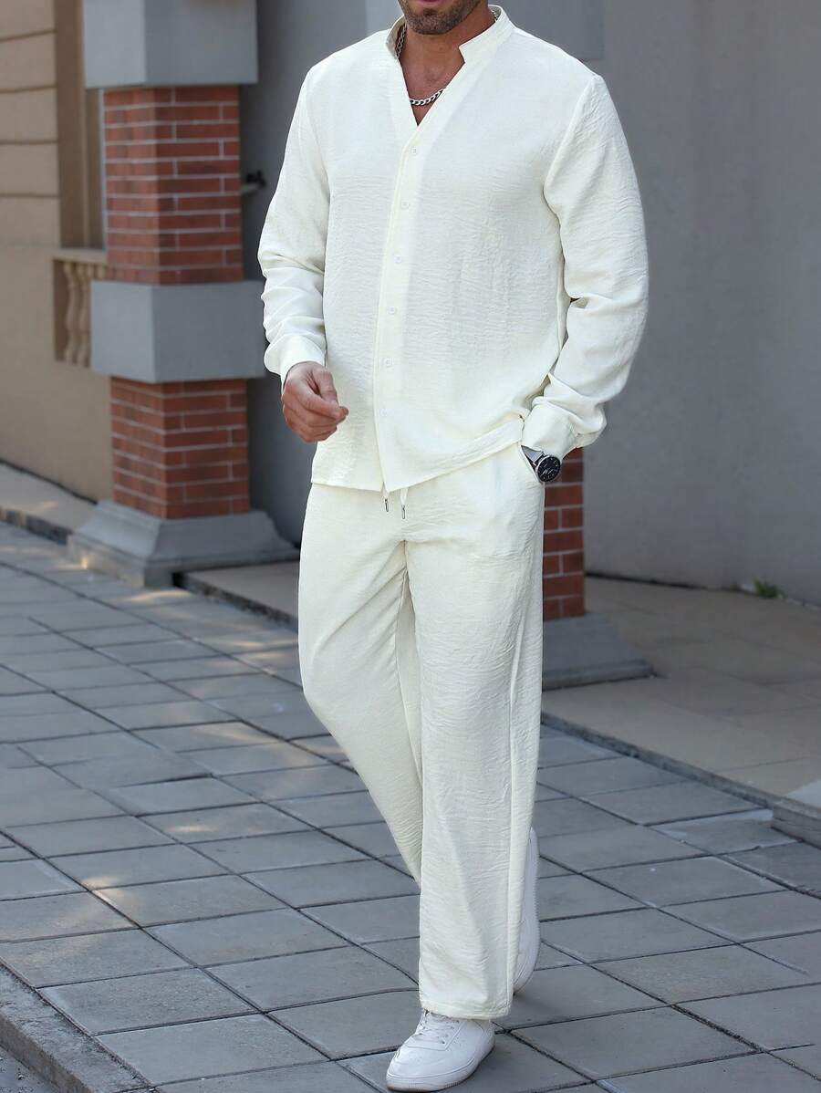 Manfinity Homme Men’s Solid Color Long Sleeve Single Breasted Shirt And Pants Set