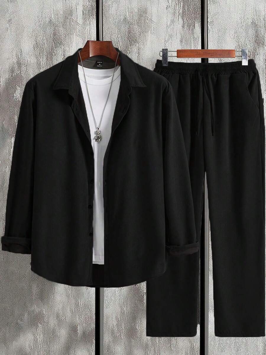 Manfinity Homme Men’s Solid Color Shirt And Long Pants Casual Set