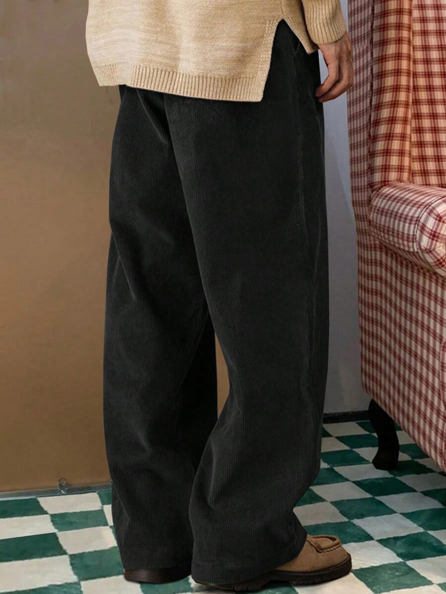 Manfinity Hypemode Men Slant Pocket Wide Leg Corduroy Pants Without Belt