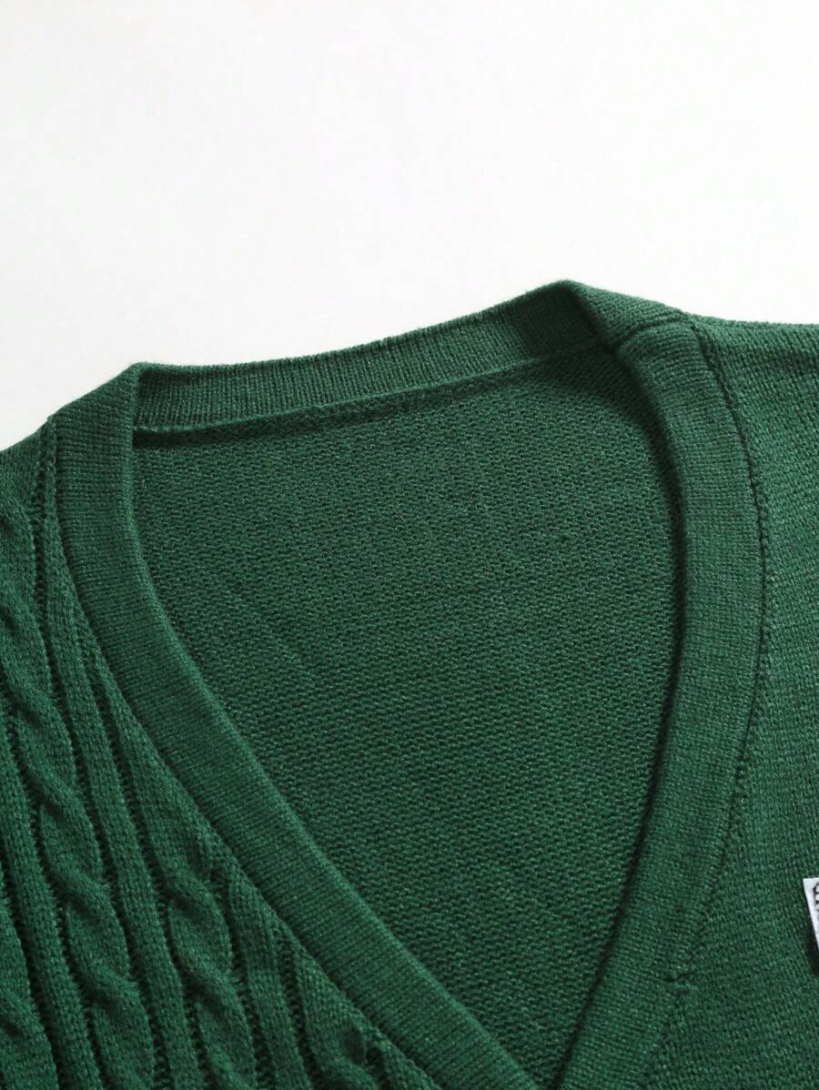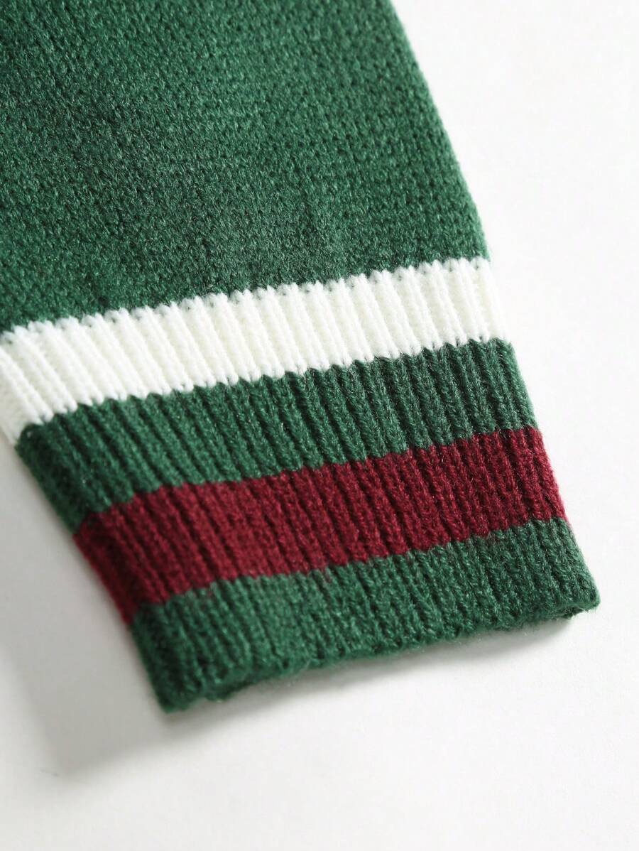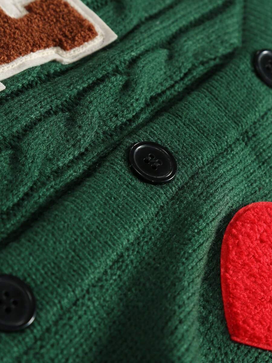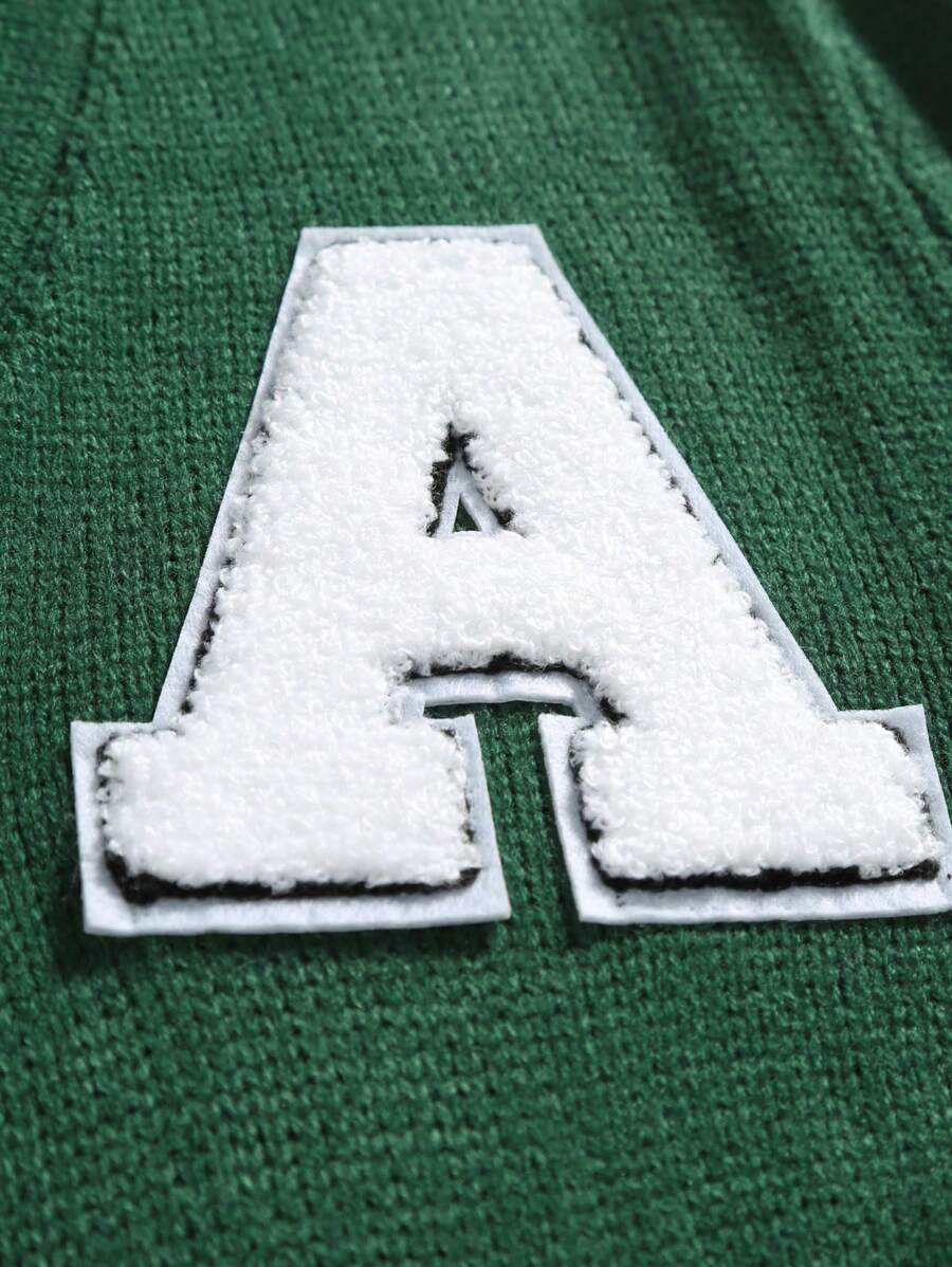 Manfinity Hypemode Men’s Green Letter Sweater Spring & Autumn Casual Rib Knit Cardigan