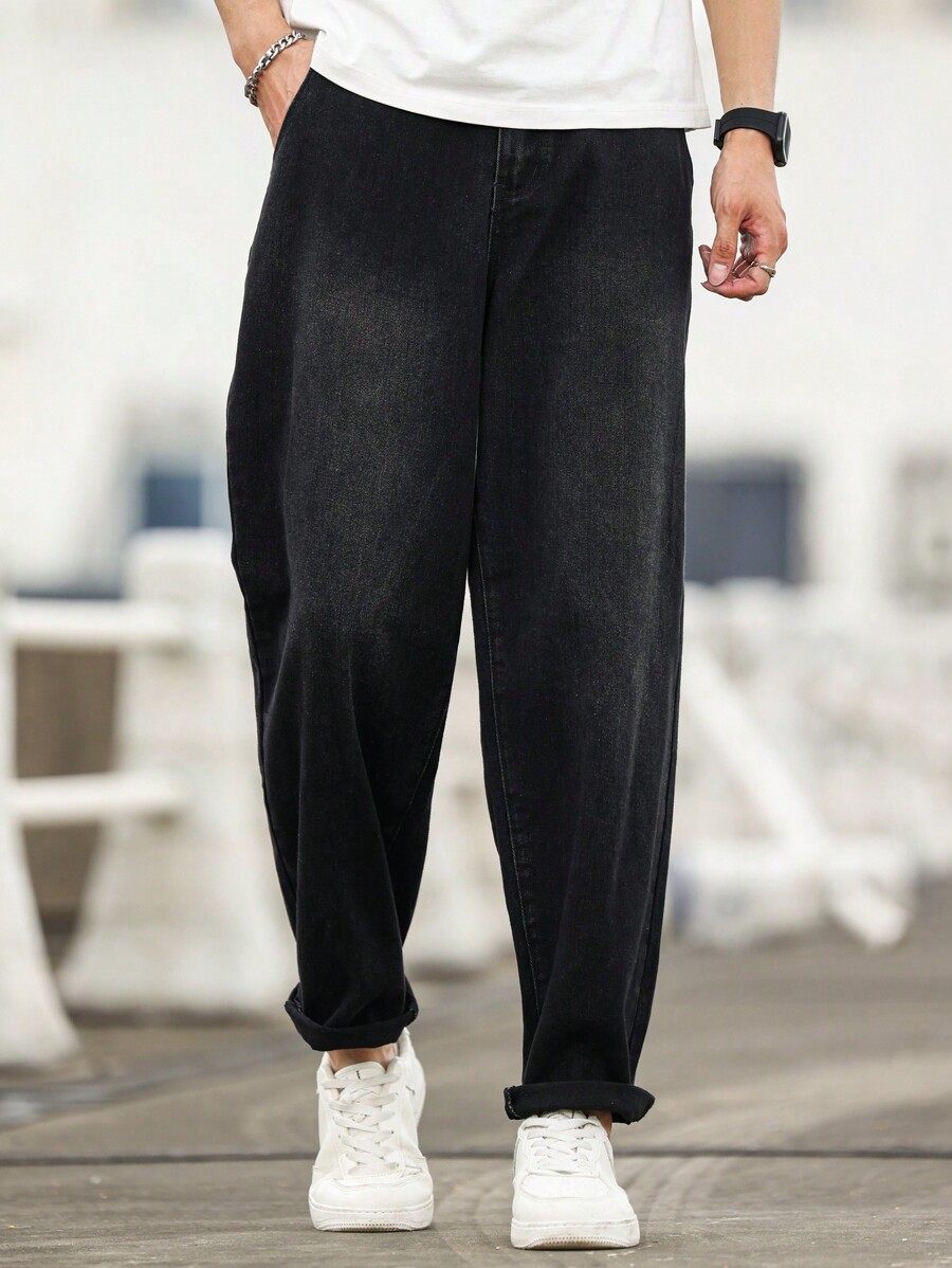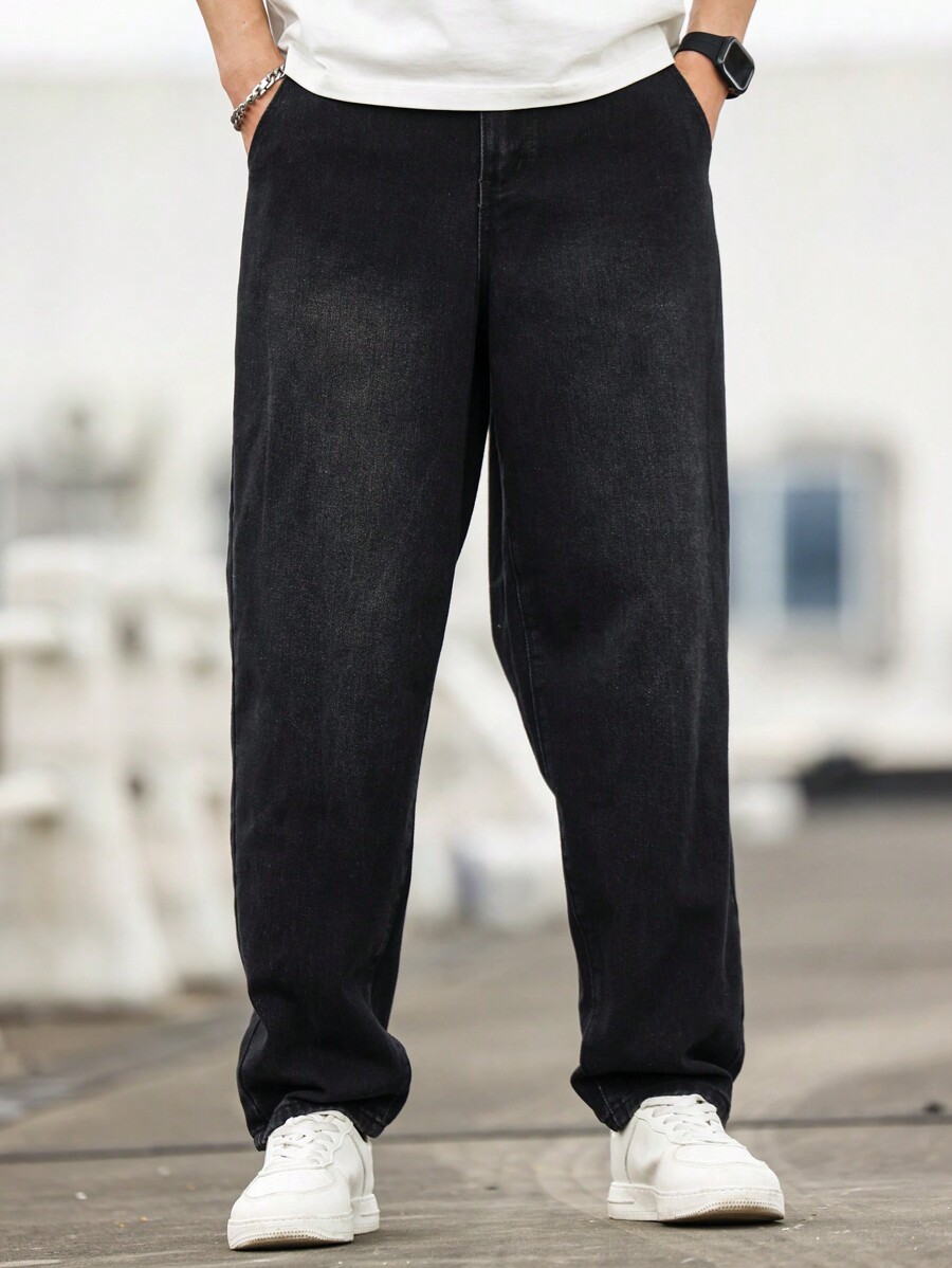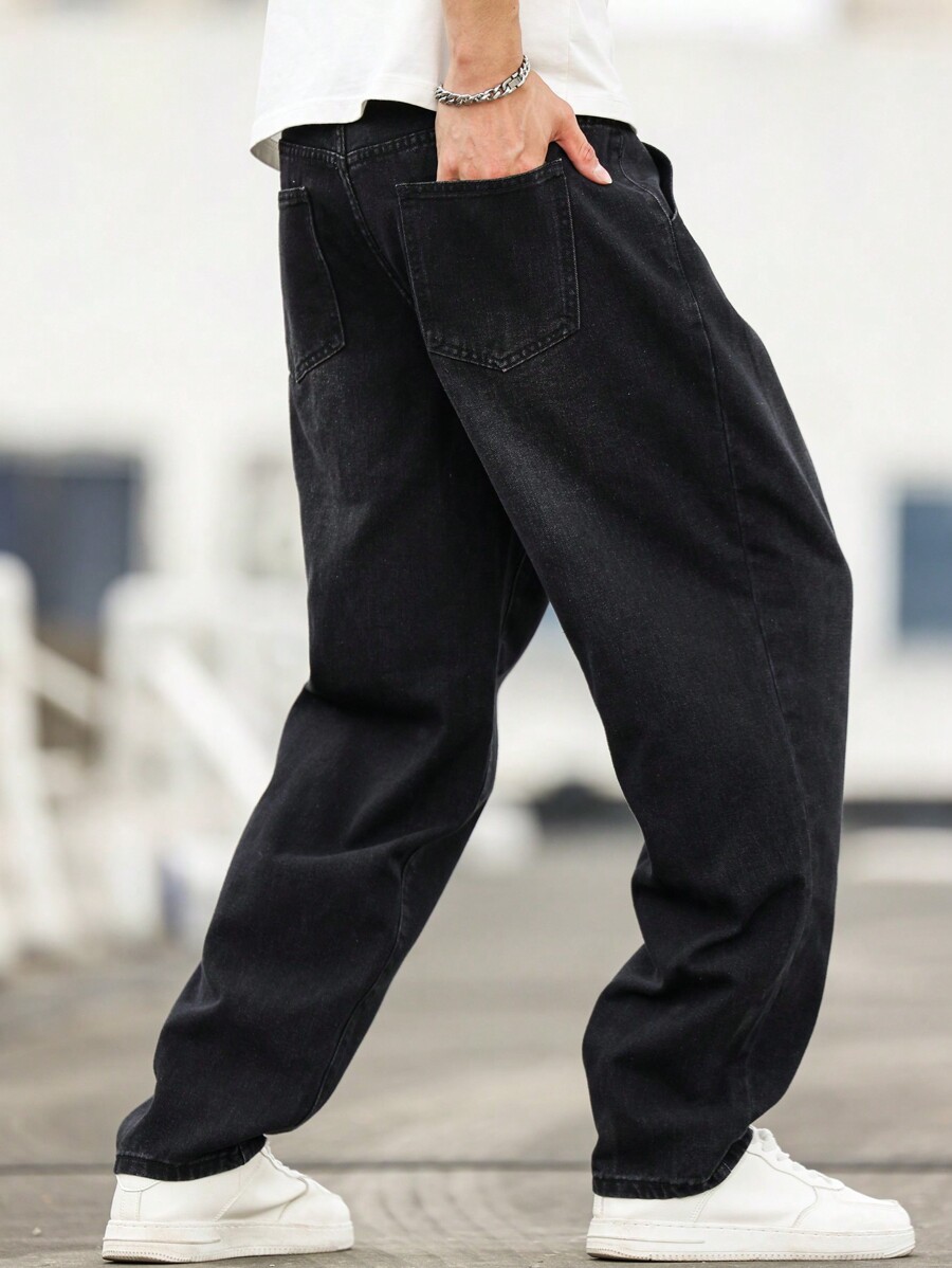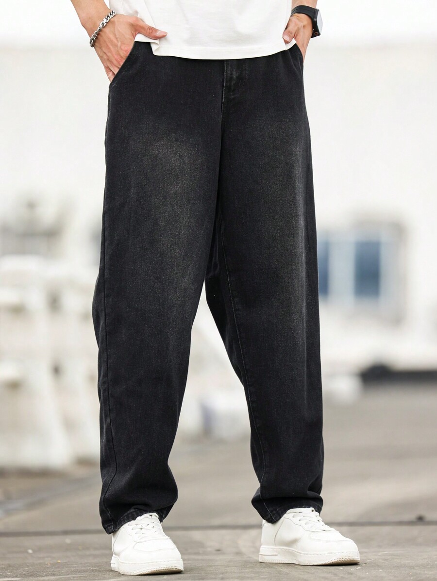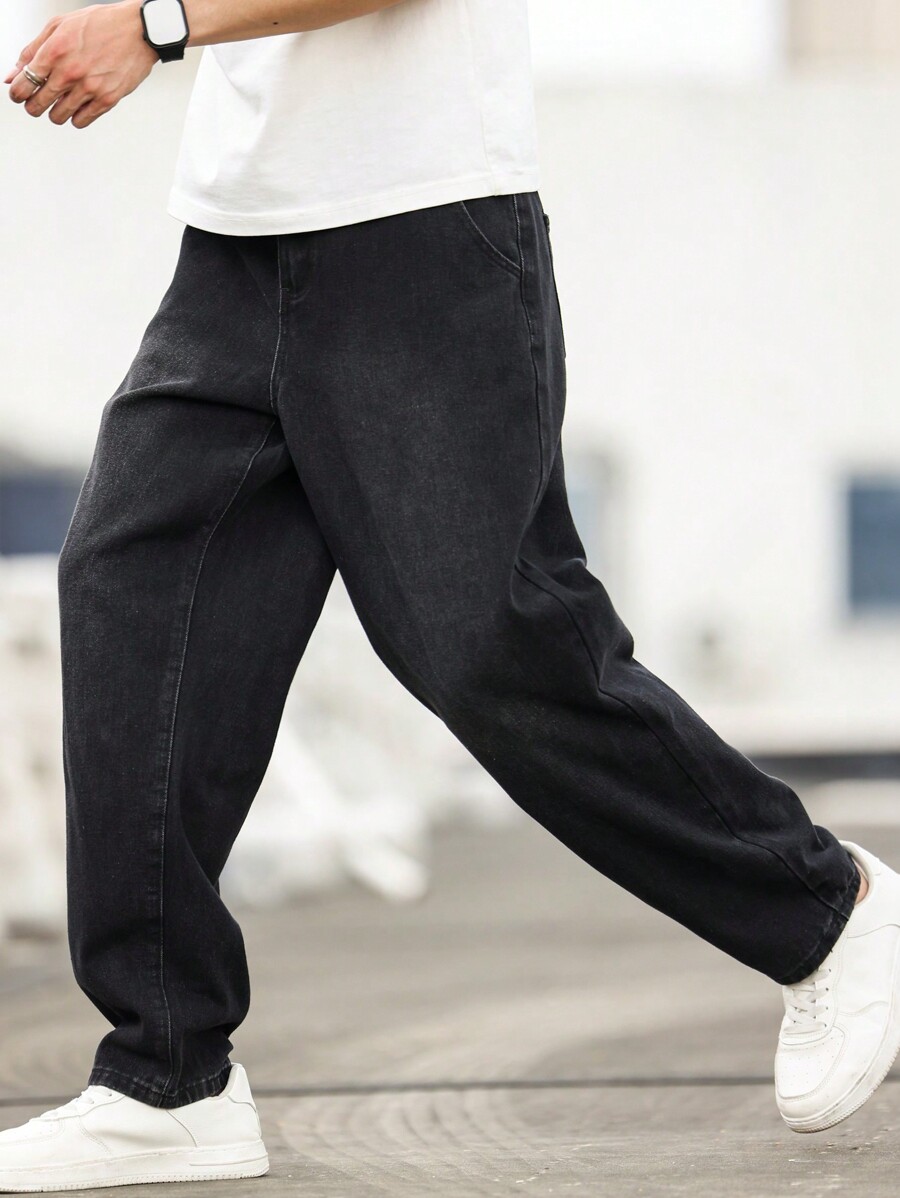 Manfinity Hypemode Men’s Wide Leg Solid Color Casual Jeans With Pockets