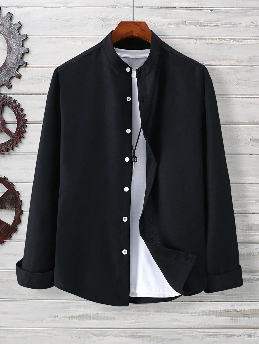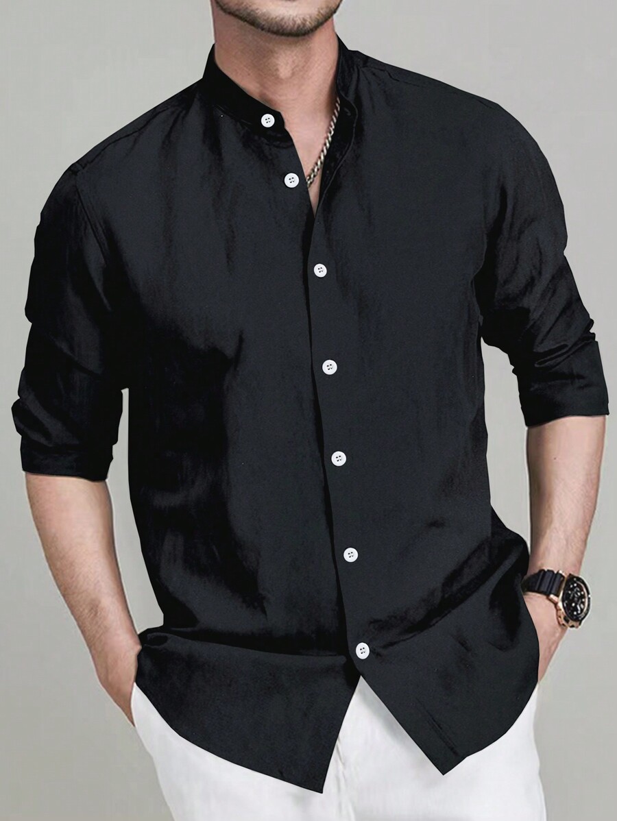 / Manfinity Mode Men’s Business Style Solid Color Long Sleeve Button-Down Shirt