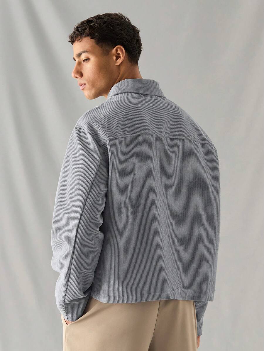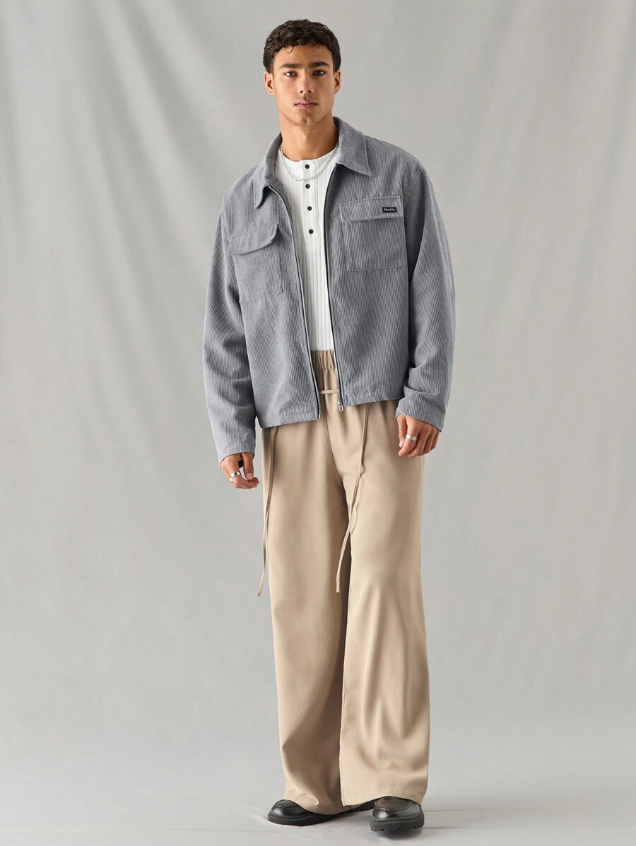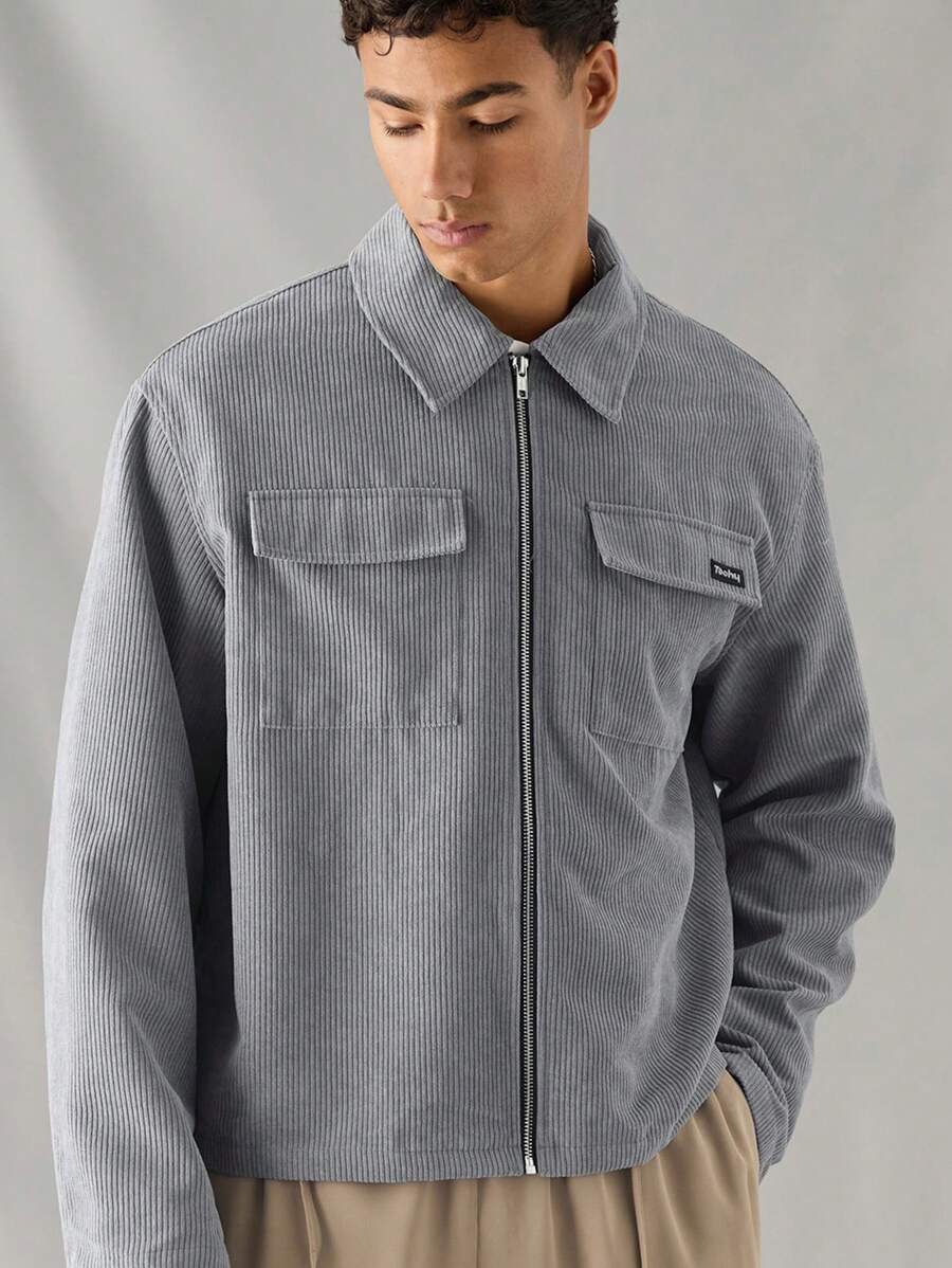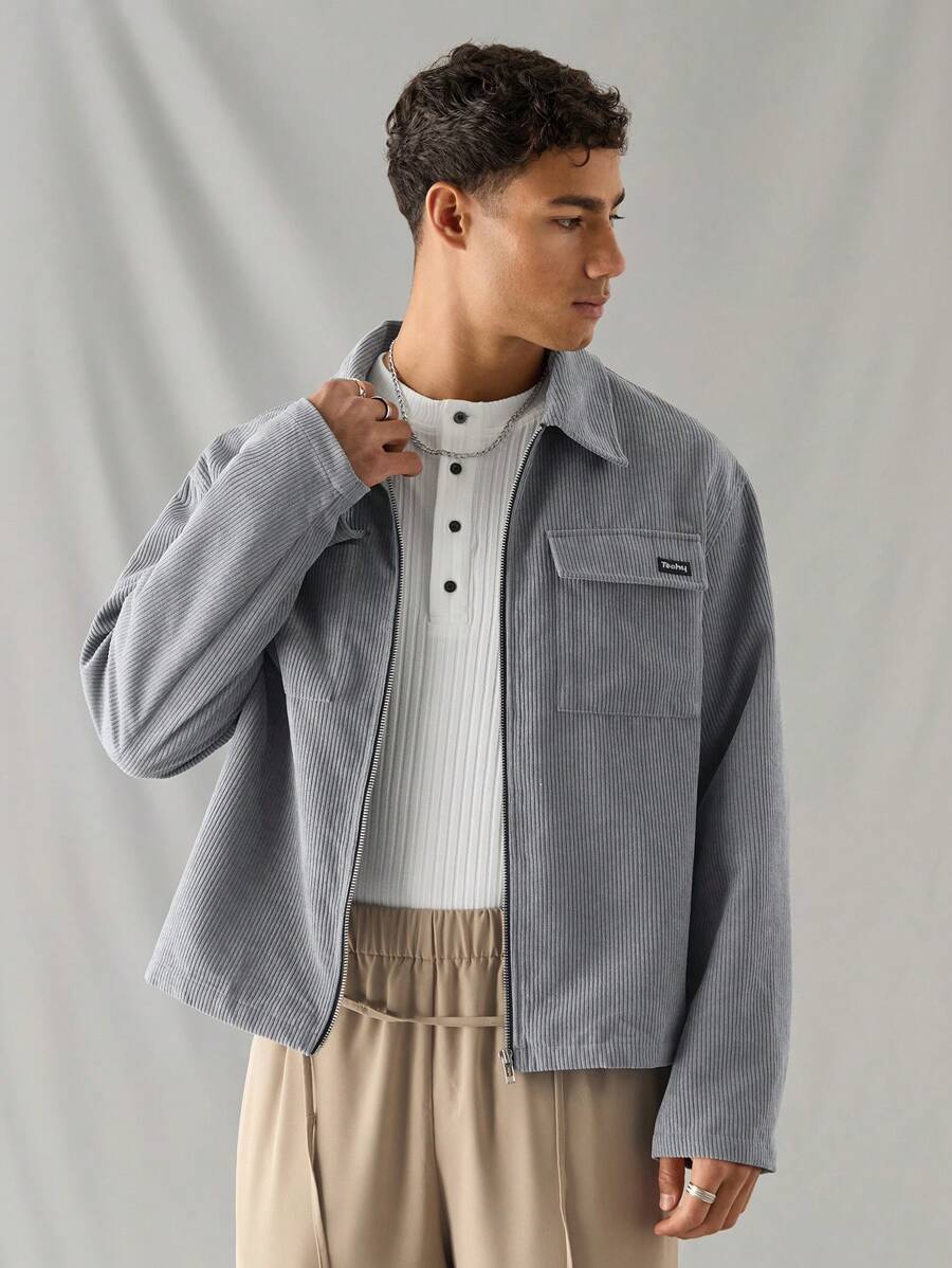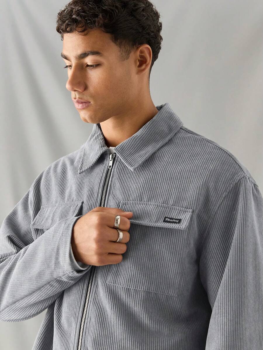 Manfinity RebelGame 1pc Men’s Woven Fashionable Casual Loose Long Sleeve Zip Up Shirt, For Daily Wear, Young Look