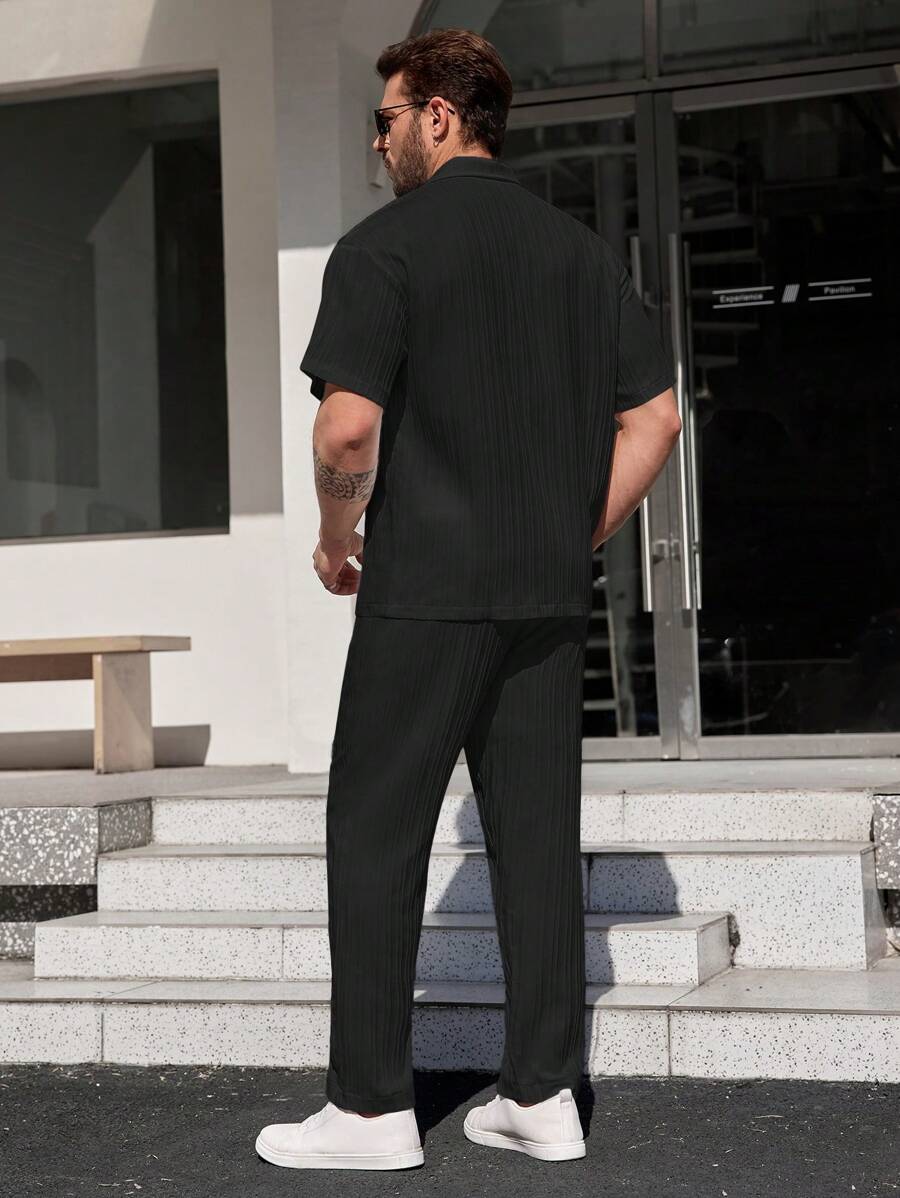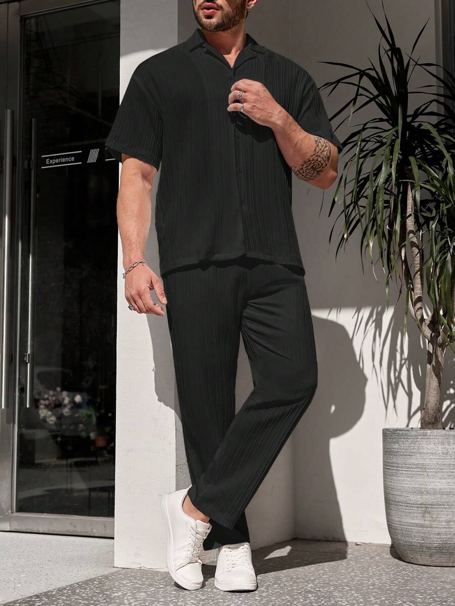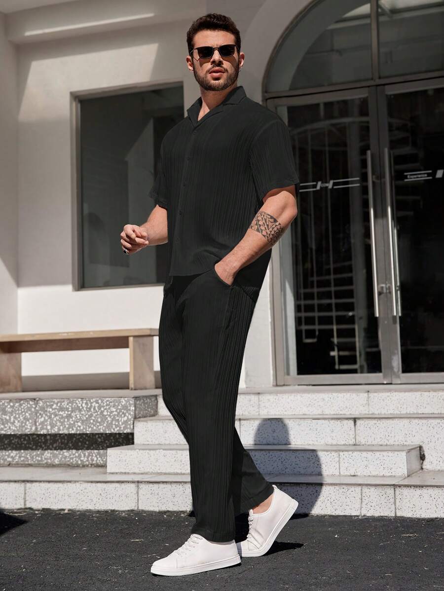 - Two-Piece Set – Includes a short-sleeve button-up shirt and matching long trousers for a coordinated, stylish look.