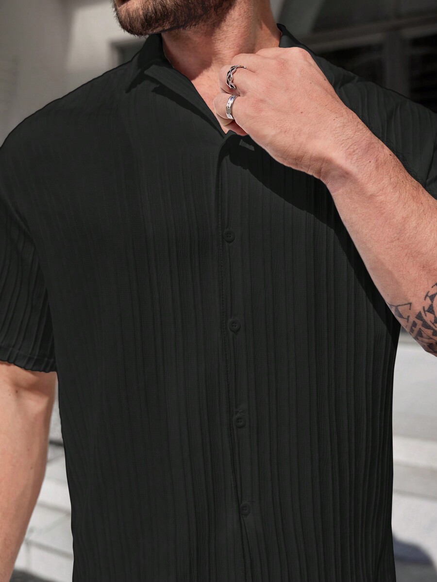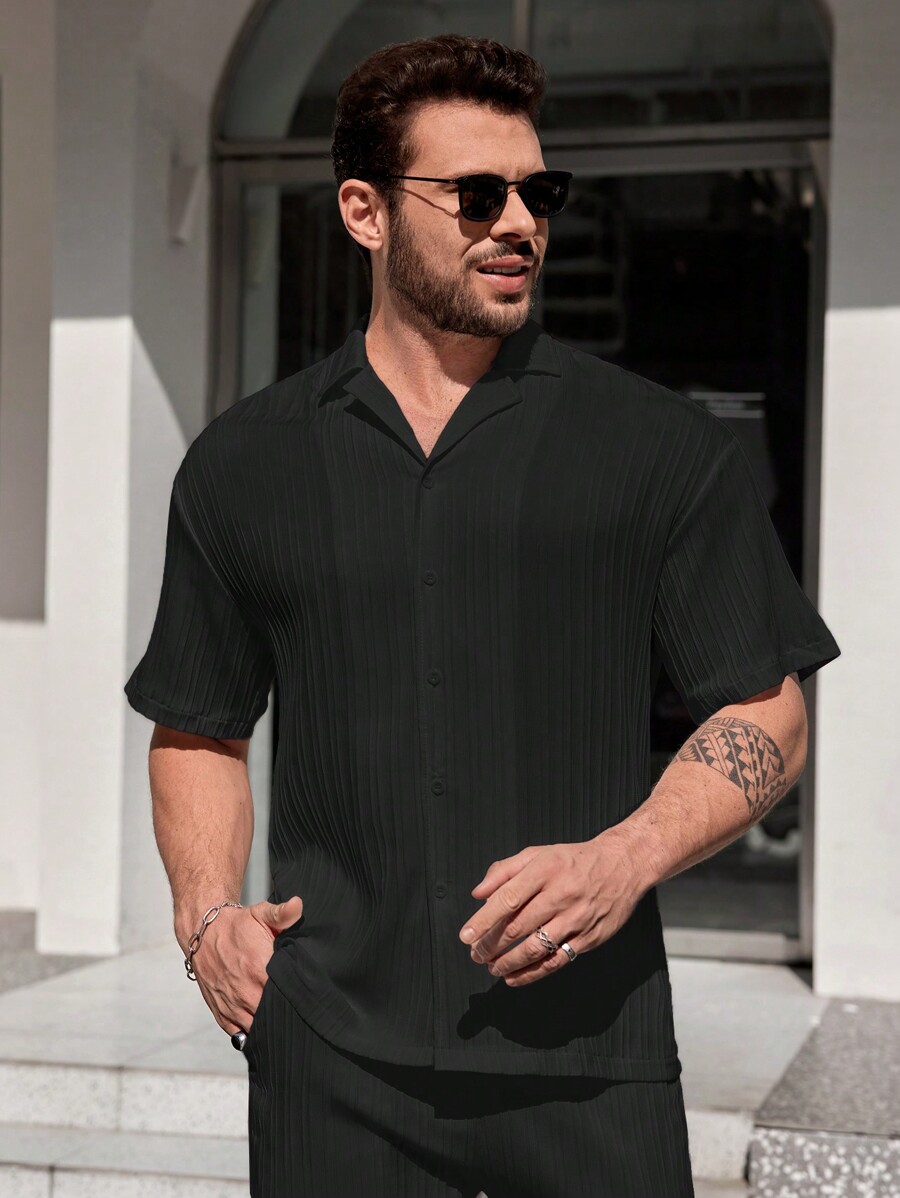- Classic Button-Up Shirt – Features a front-button closure, spread collar, and short sleeves for a timeless yet modern appeal.