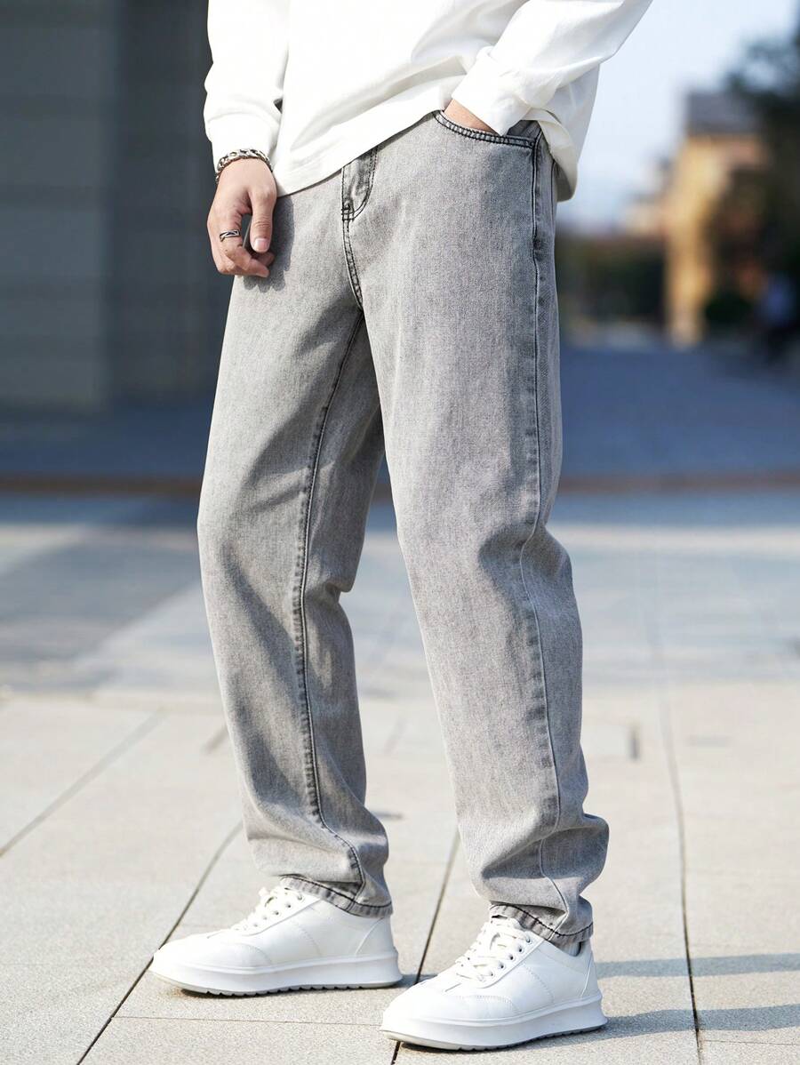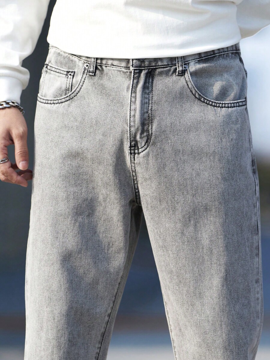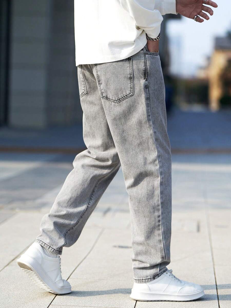 Manfinity RivetRise Men’s Casual Stone Washed Tapered Leg Jeans