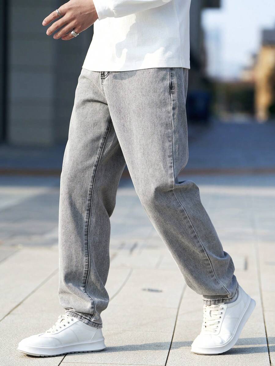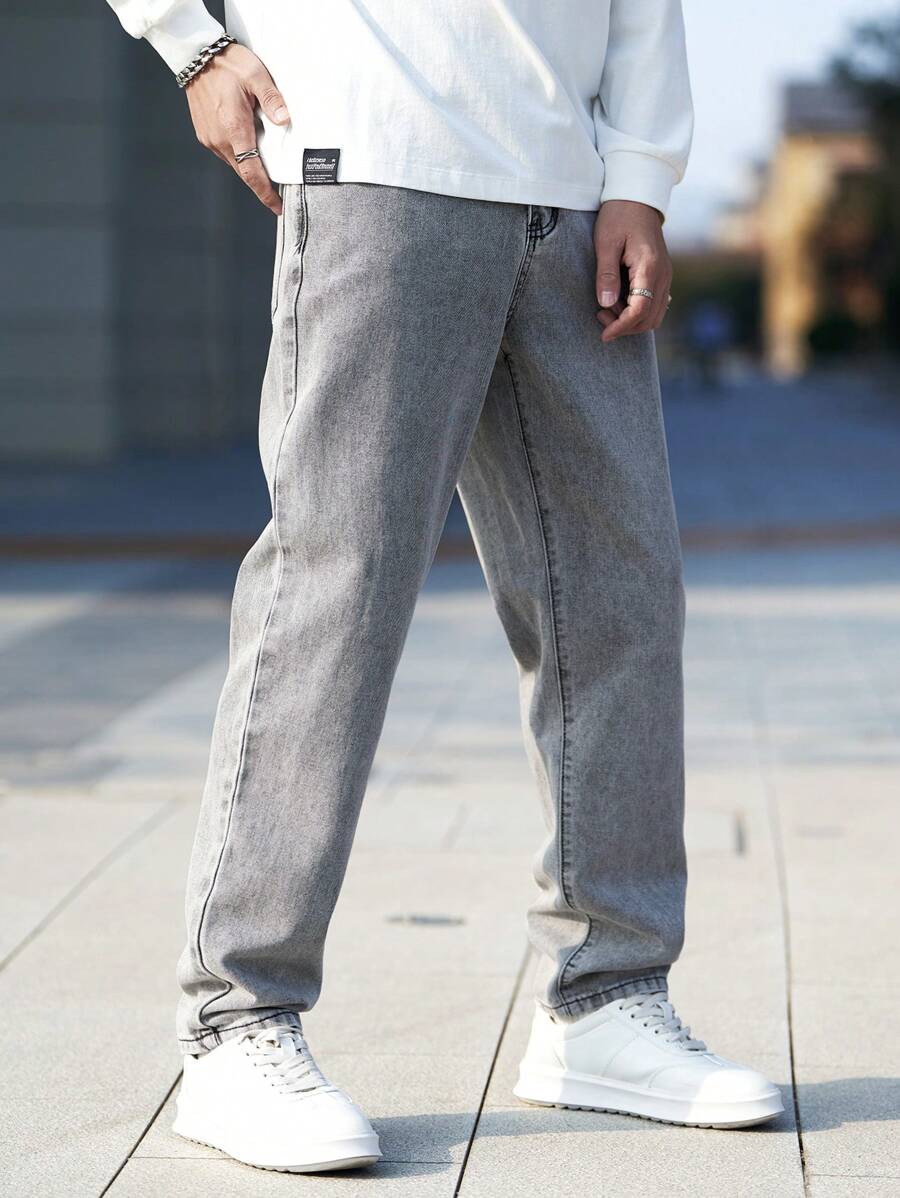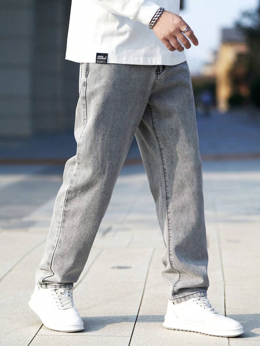 Manfinity RivetRise Men’s Casual Stone Washed Tapered Leg Jeans