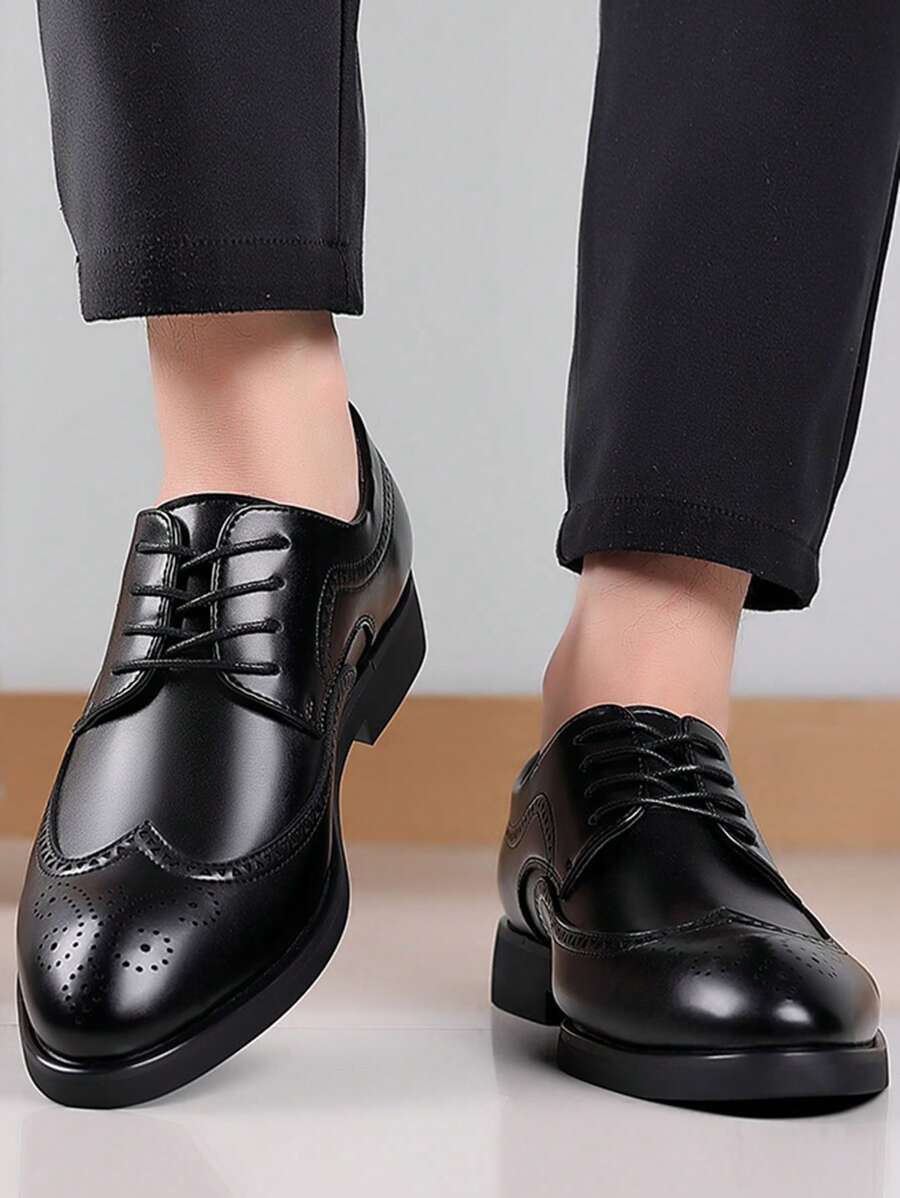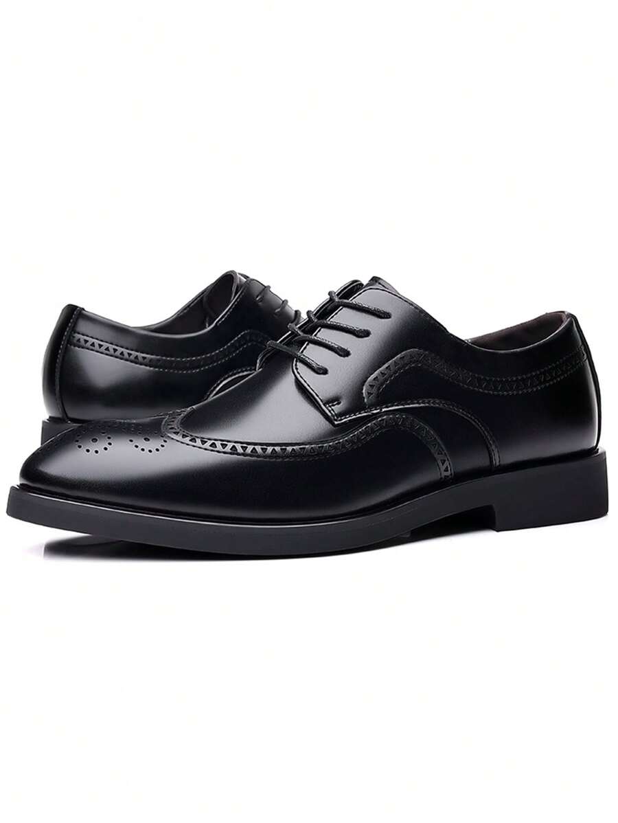 Men Lace Up Hollow Out Dress Shoes, Business Black Derby Shoes