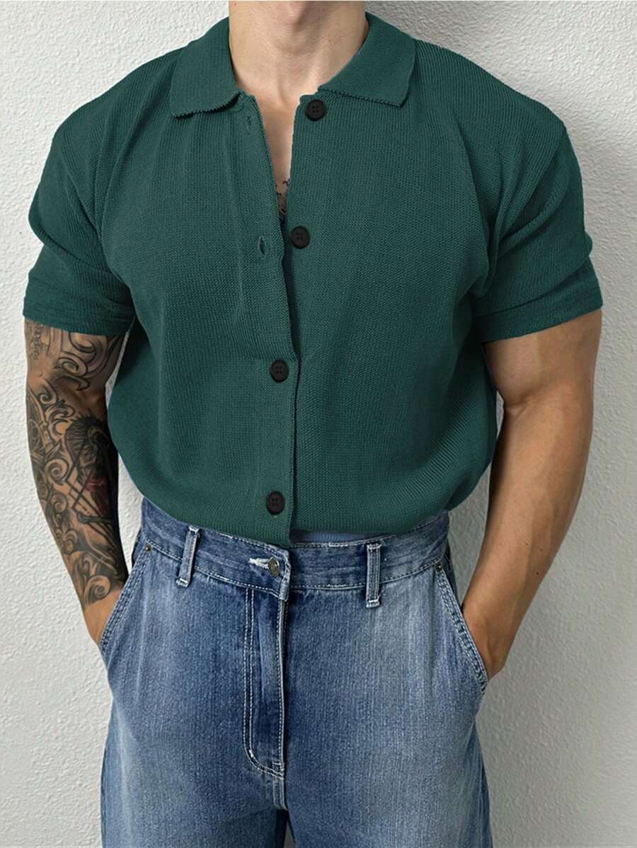 Men's Casual Solid Color Short Sleeve Button-Up Shirt, Fashion And Versatile For Daily Wear, Spring/Autumn quantity
