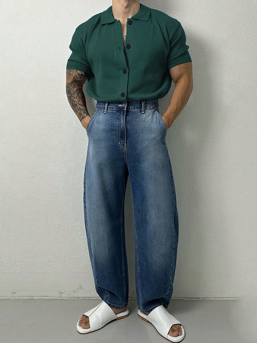 Men’s Casual Solid Color Short Sleeve Button-Up Shirt, Fashion And Versatile For Daily Wear, Spring/Autumn