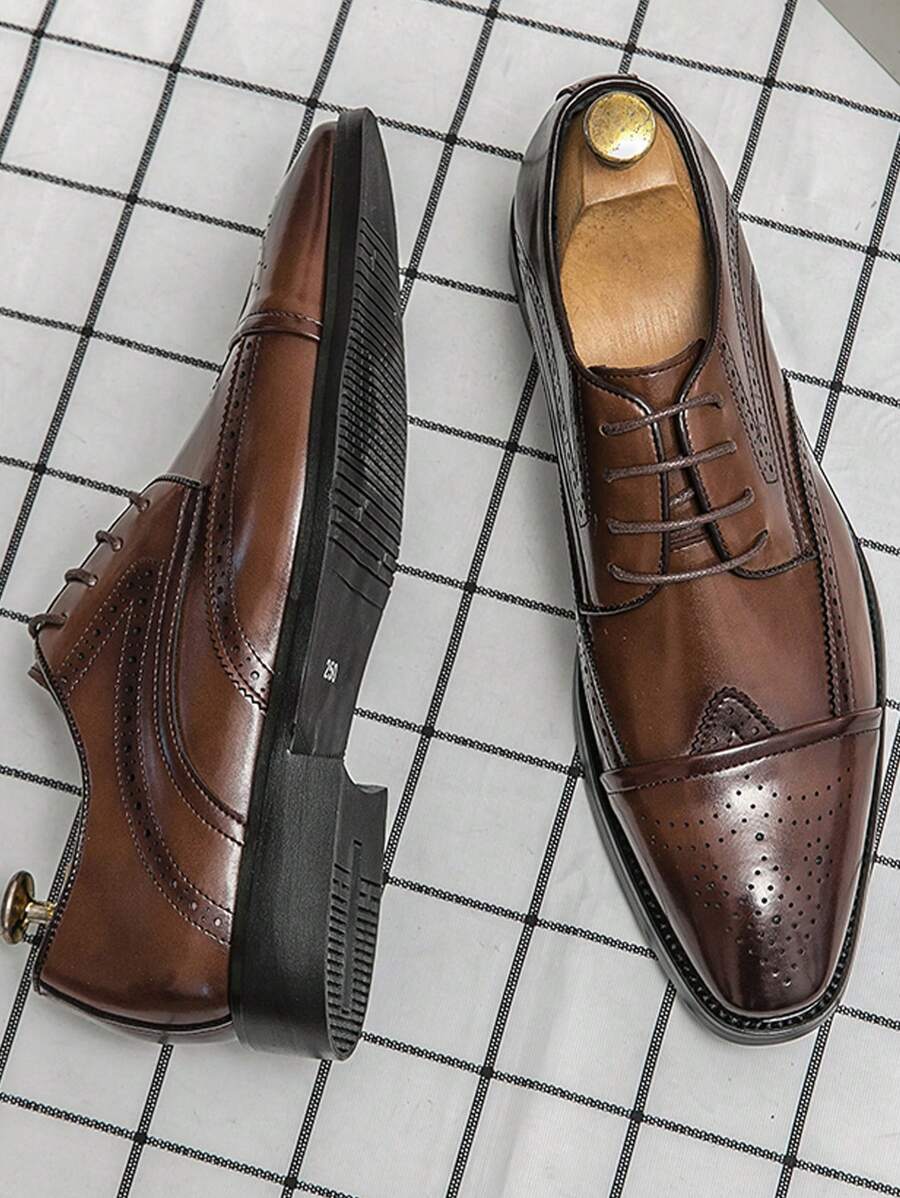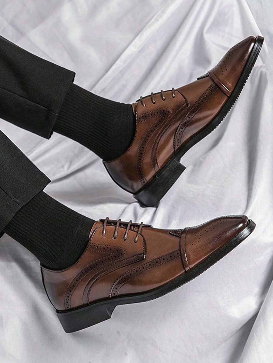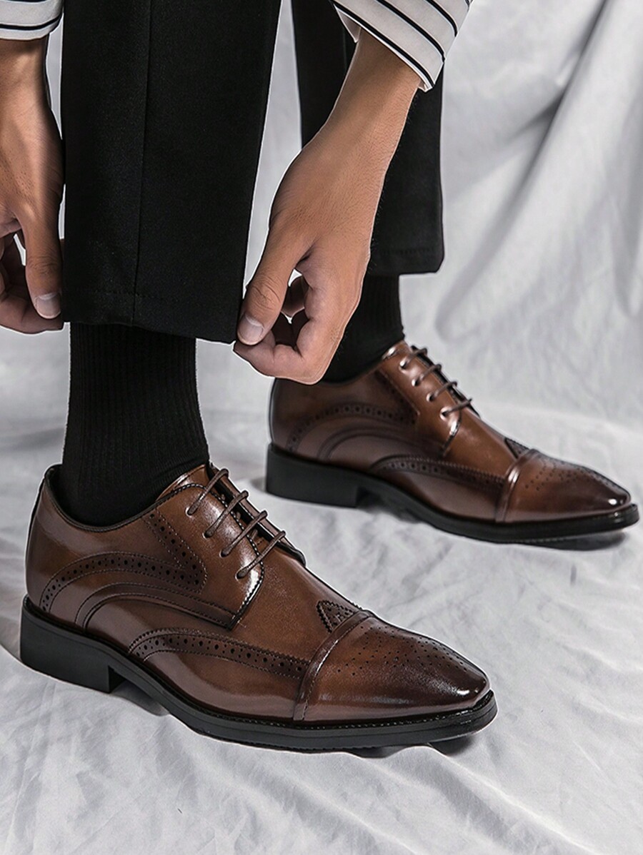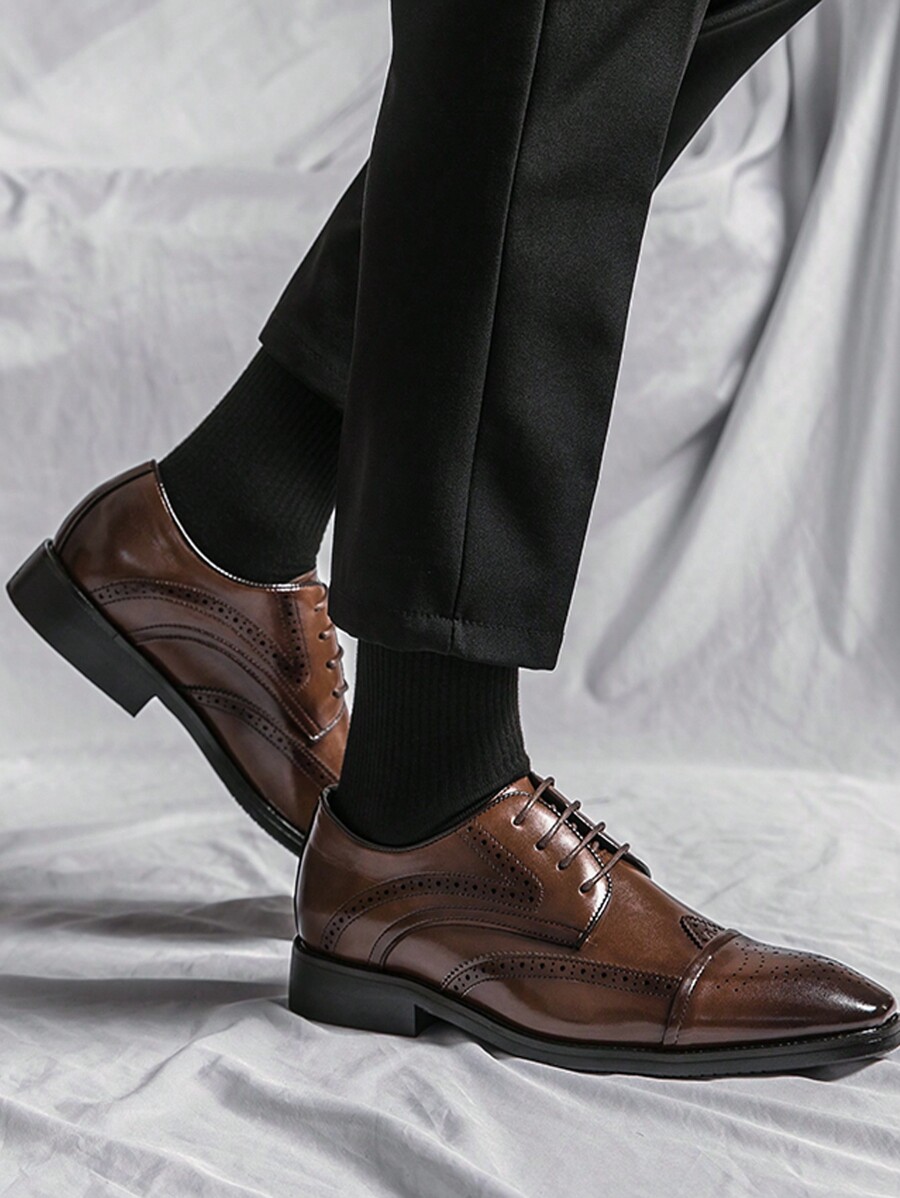 Men’s Formal Brogue Carved PU Leather Shoes For Business Office, Saturday Night, Banquet