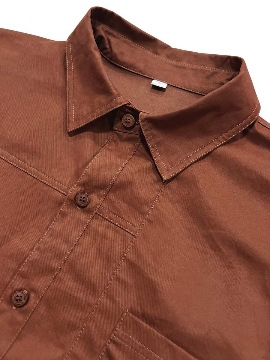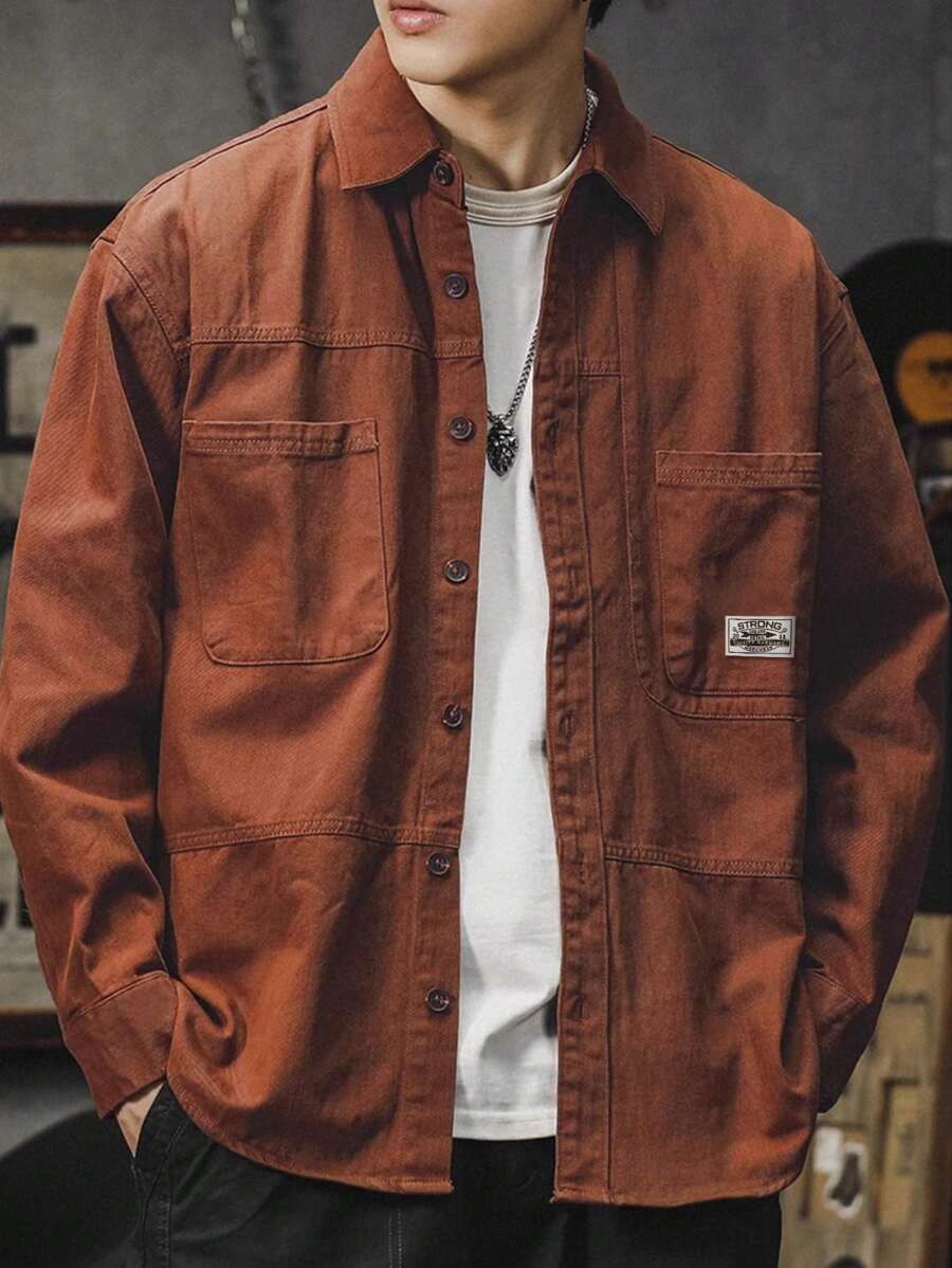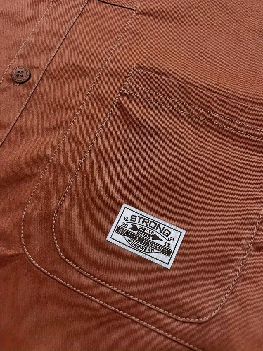 Men’s Long Sleeve Casual Shirts, Relaxed Fit Vintage Style Turn-Down Collar Multi-Pocket Design, Workwear For Office, Daily Wear
