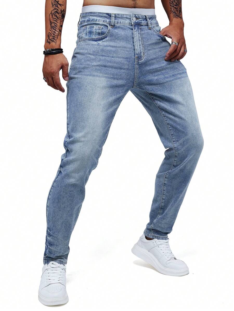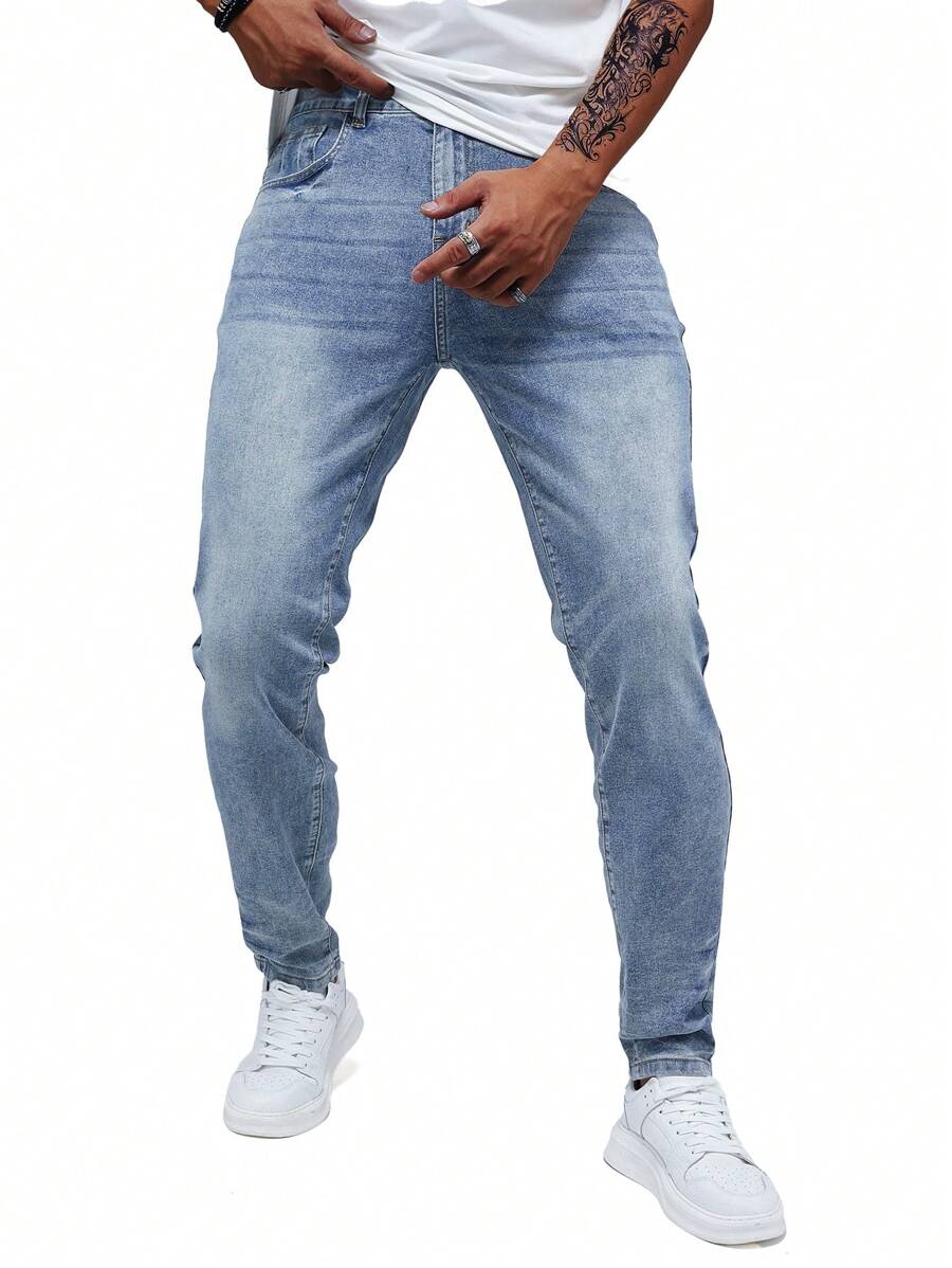 Men’s Retro Casual Slim Fit Blue Denim Jeans