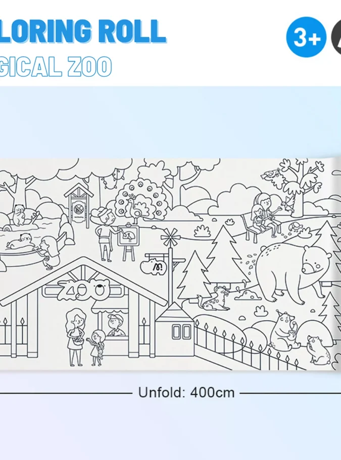 The Mideer Self Adhesive Coloring Roll – Zoo, 4 Meter is the perfect choice for kids who love animals and art. Designed with a fun zoo theme, this extra-long roll features detailed illustrations of lions, elephants, giraffes, and more, ready to be brought to life with colors.