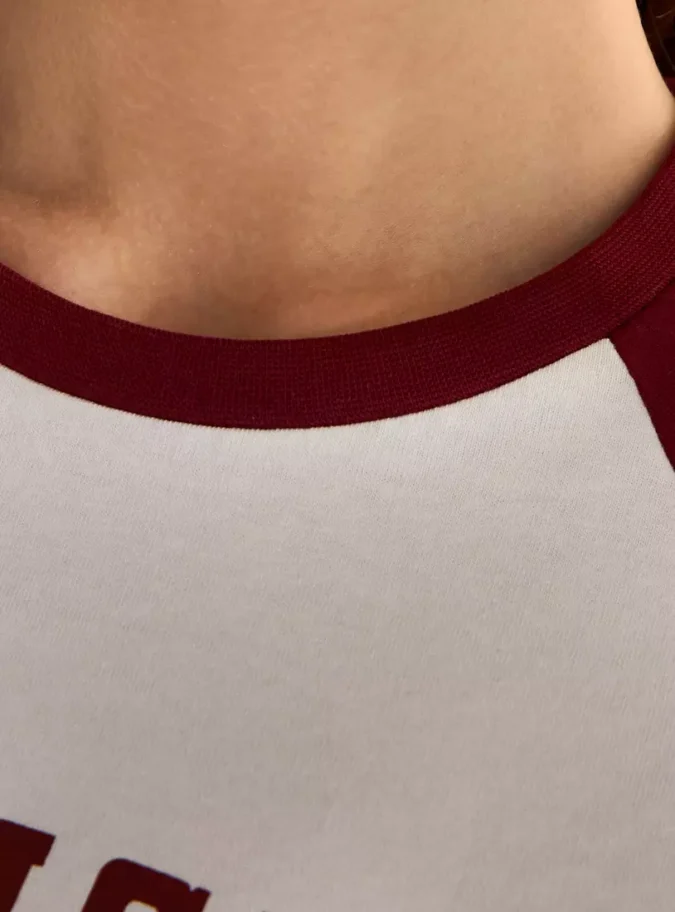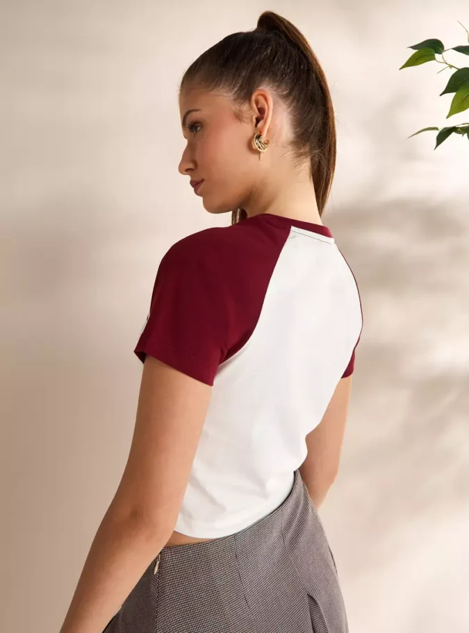 Raglan Sleeves: Contrast sleeves add a stylish and sporty touch.