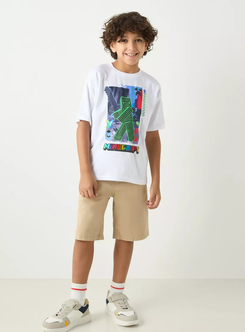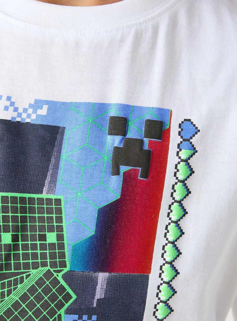 Minecraft Graphic Print T-Shirt with Short Sleeves