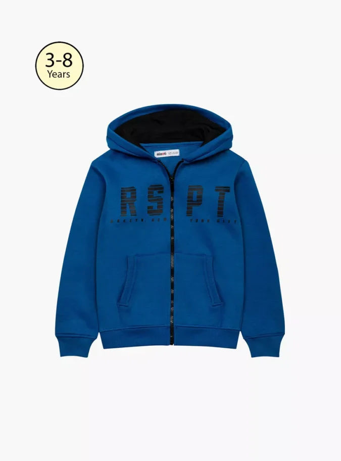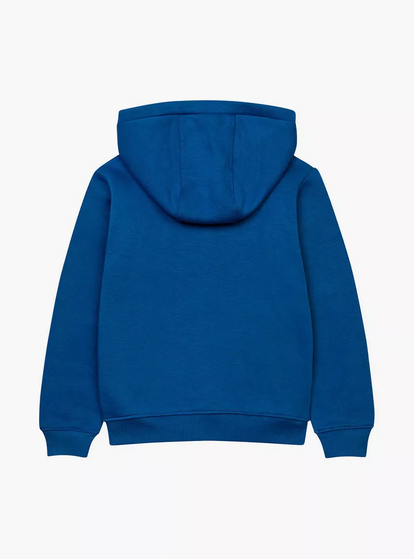 The Minoti Printed Long Sleeves Hoodie is a stylish and comfortable garment designed for boys aged 1 to 16 years. Crafted from a soft cotton-blend fabric, it offers warmth and breathability, making it ideal for cooler days. The hoodie features a cozy, lined hood and ribbed cuffs and hem for a snug fit. Its standout design includes bold printed graphics on the chest, sleeve, and lower back, adding a trendy touch to any casual outfit. Available in various sizes and colors, this hoodie is perfect for layering and everyday wear.