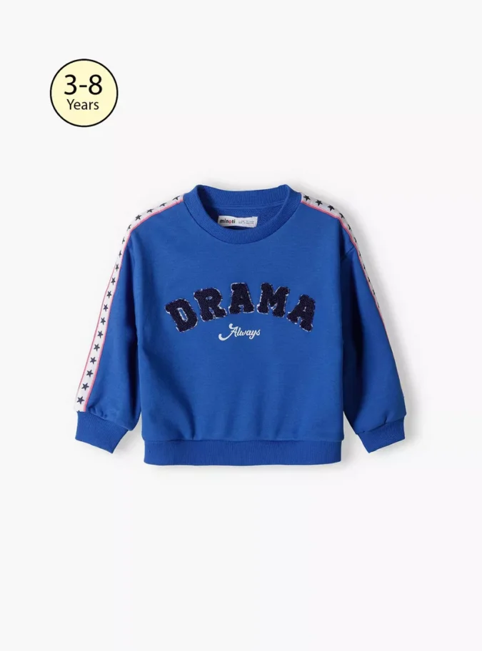 The Minoti Printed Long Sleeves Sweatshirt is a casual everyday piece combining comfort and style. Made with a soft cotton-blend fabric, it gives a cozy, warm feel for cooler days without being too bulky. It features a classic crew neck, ribbed cuffs and hem to maintain shape, and a bold printed graphic or lettering across the front to add visual interest. The relaxed fit allows for easy movement, making it ideal for play, school, or casual outings. Available in several colors and print motifs, this sweatshirt pairs well with jeans, leggings, or joggers.