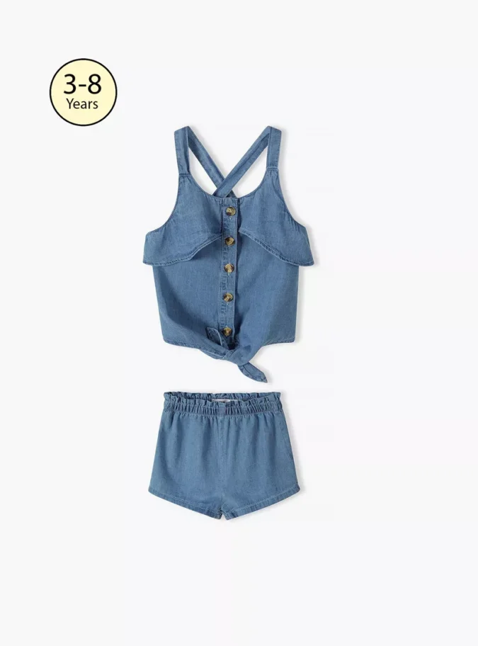 The Minoti Solid Short Sleeves T-Shirt with Shorts Set is a perfect blend of comfort and casual style for everyday wear. Designed with a soft, breathable fabric, this set ensures your child stays cool and relaxed throughout the day. The solid short-sleeve t-shirt pairs effortlessly with matching shorts, making it a versatile outfit for playdates, outings, or just lounging at home. Its simple yet stylish design allows easy mix-and-match with other wardrobe pieces, making it a must-have staple.