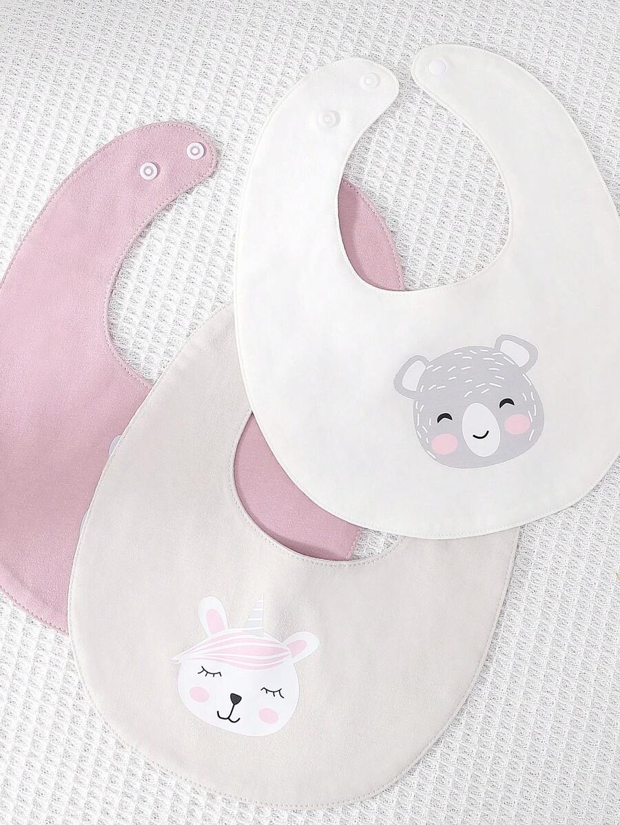 / momscare Random Set Of 3 Baby Girls Animal Pattern Bibs