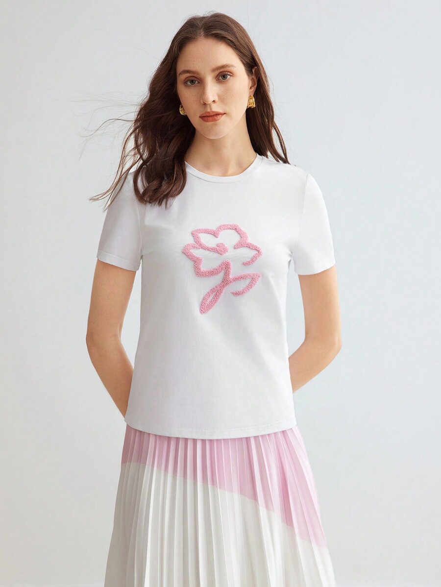 MOTF PREMIUM WOMEN’S KNITTED T-SHIRT WITH FLORAL PATTERN,VALENTINE’S DAY