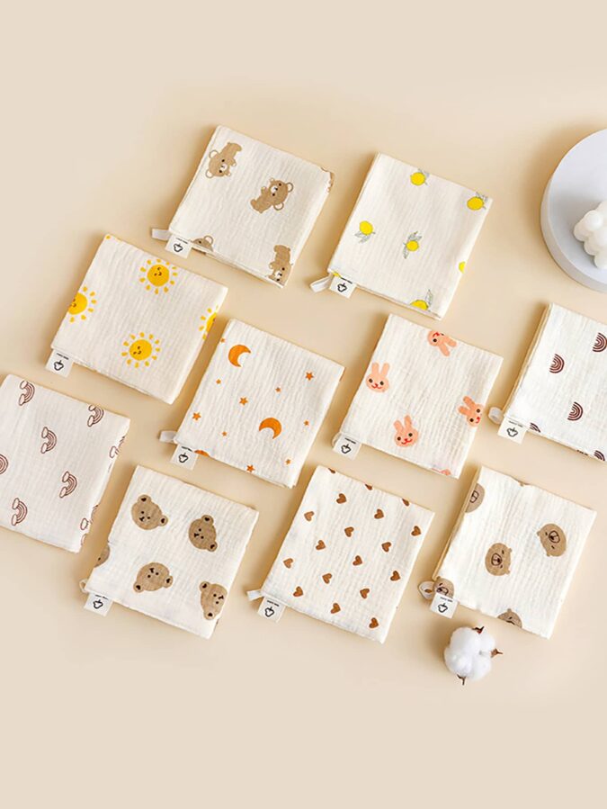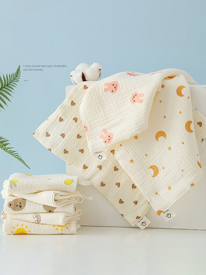 Multicolor Randomly Sent Baby Towel Set Including Washcloths, Gauze Towels, Cartoon Bibs, Etc.