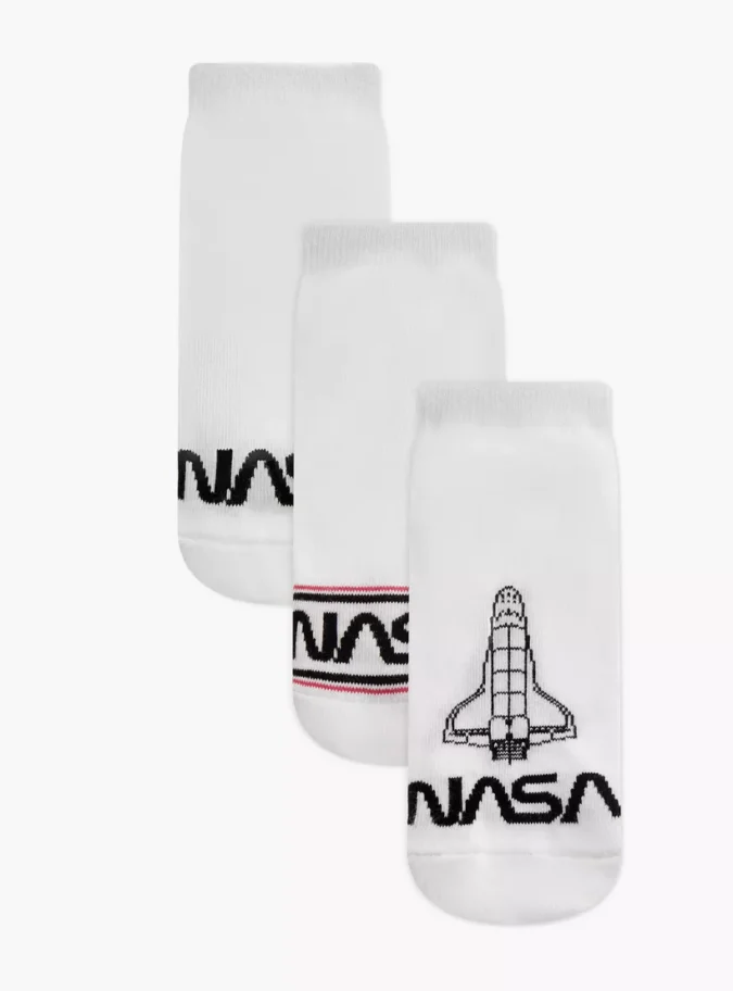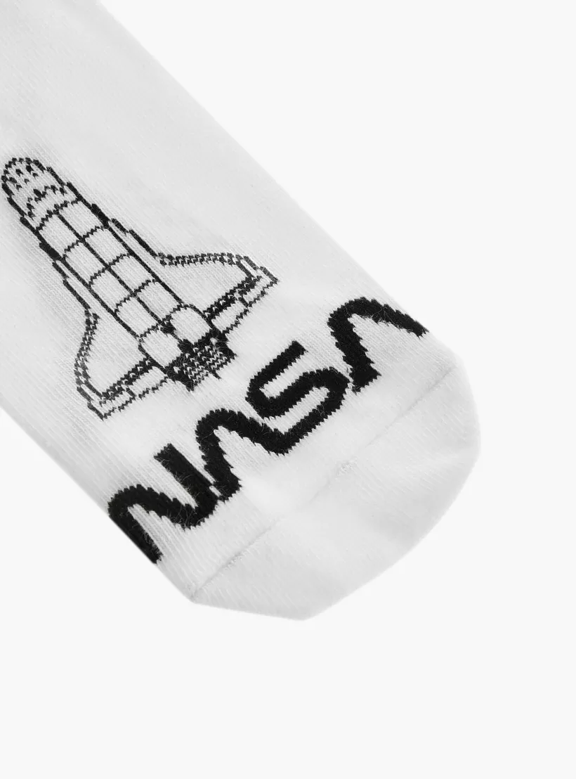 Design: Each pair features the iconic NASA logo with star patterns, reflecting the vastness of space. The colors include classic black, white, and gray, making them versatile for various outfits.