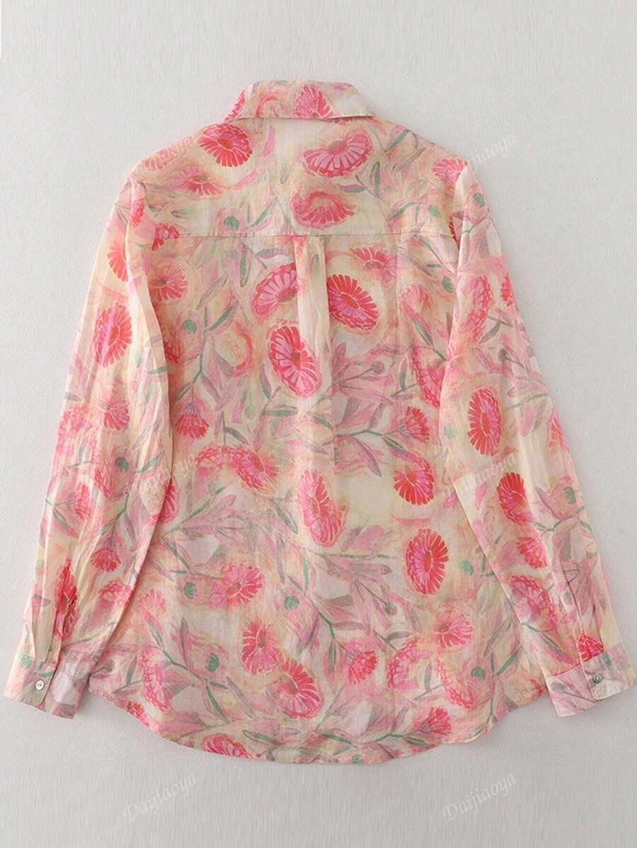 / New Arrival Autumn Ditsy Floral Linen Blouse, French Style Minimalist Casual Women Top