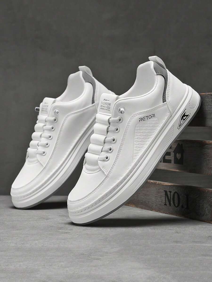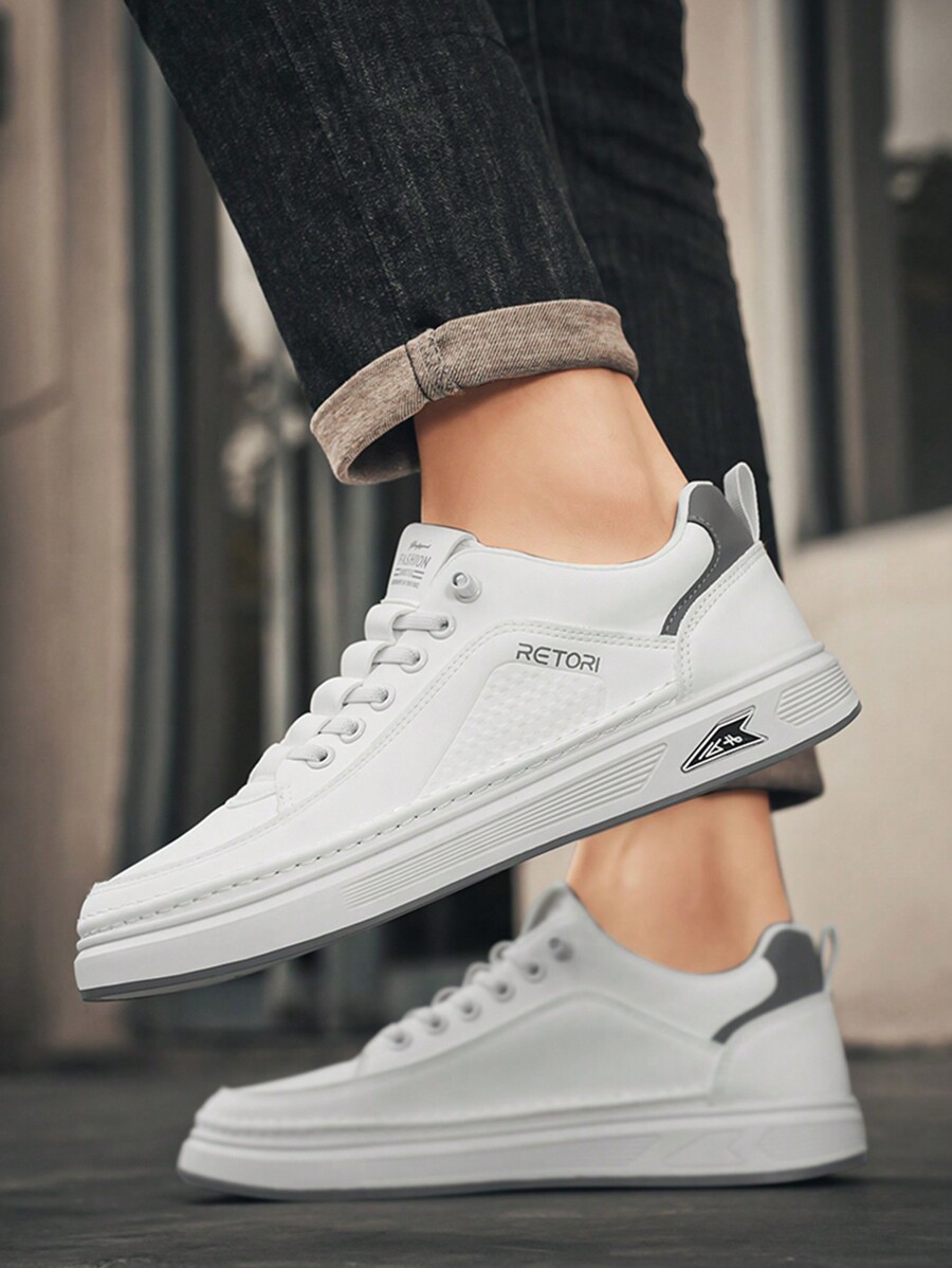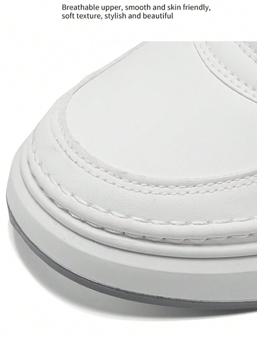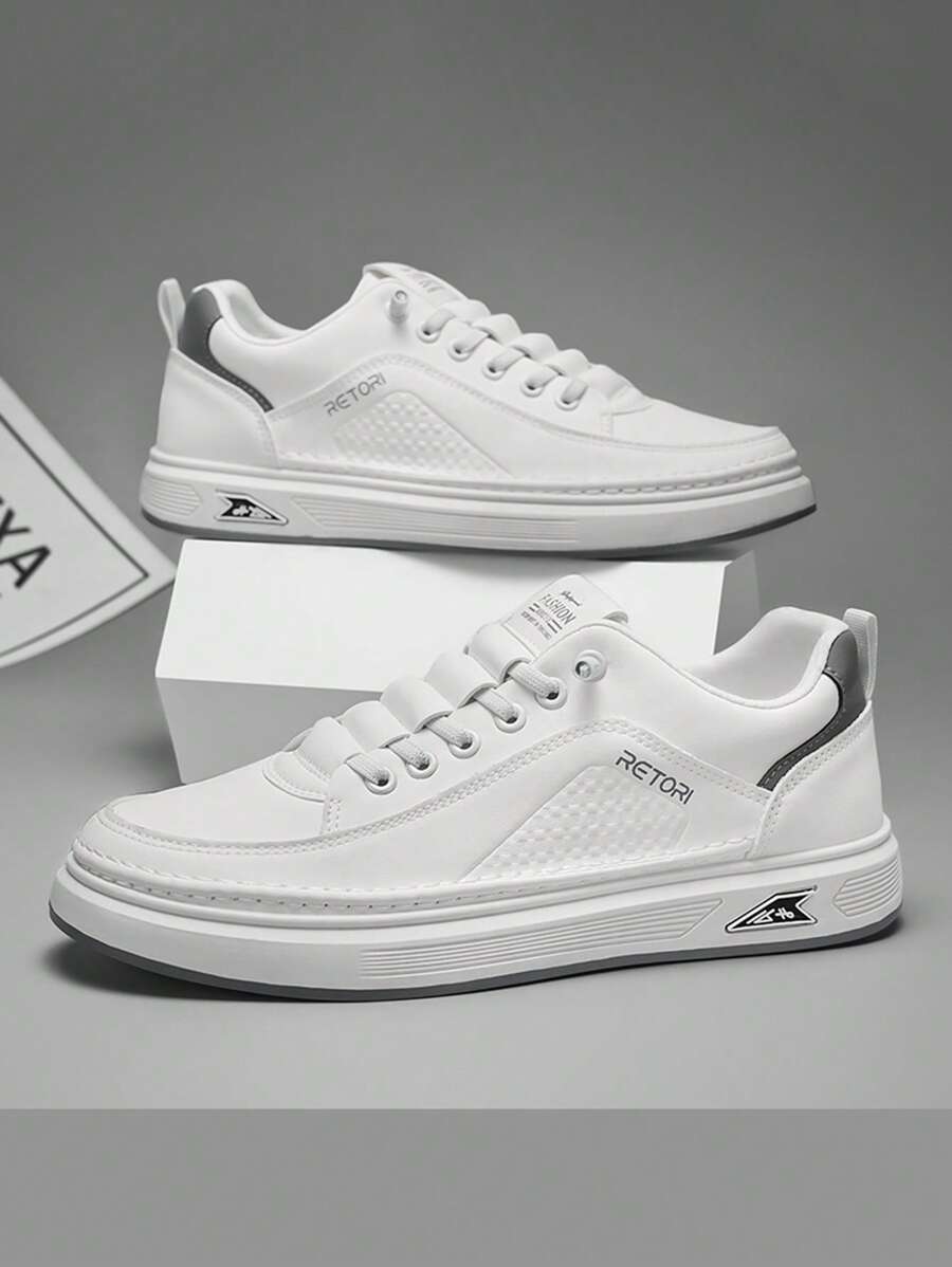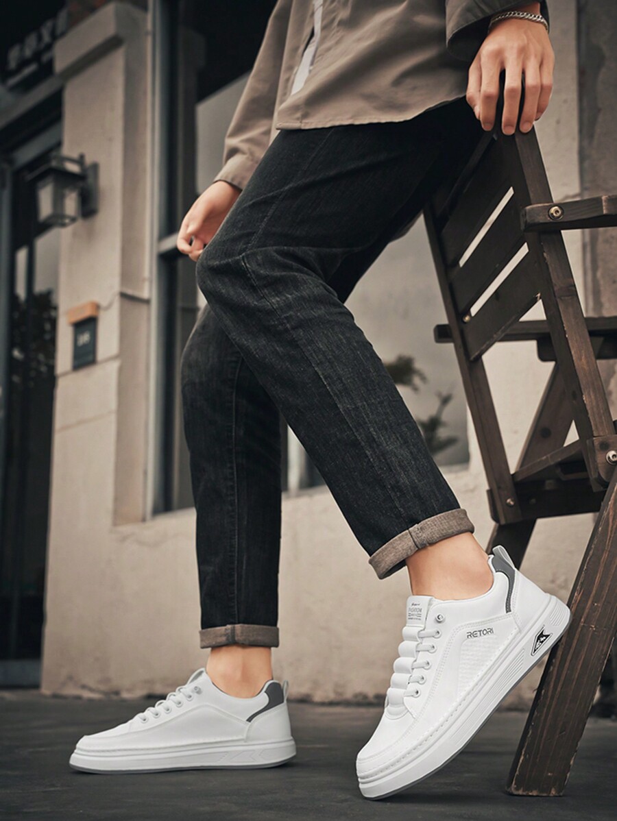 New Fashion Men Korean Style Printed Sneakers, Breathable White Flat Skateboard Shoes