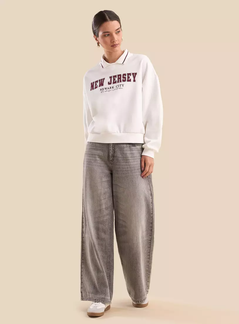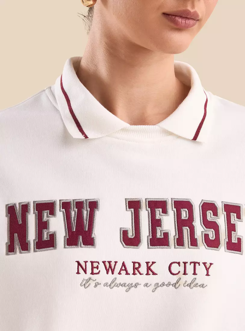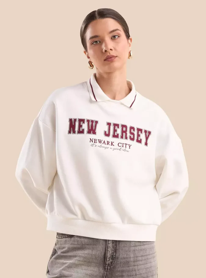 Collegiate Print Design: Striking “New Jersey” chest print for a sporty, urban look.