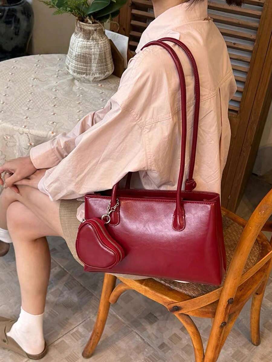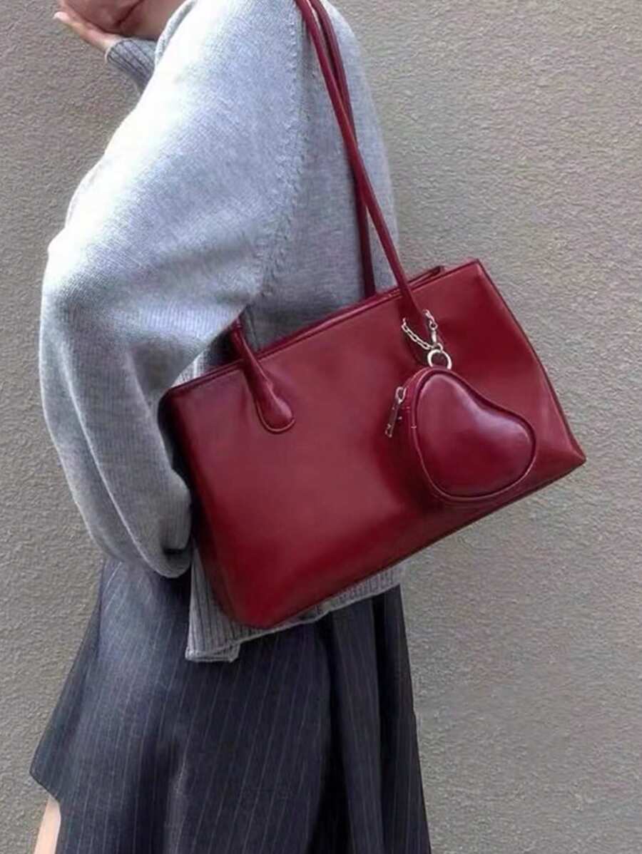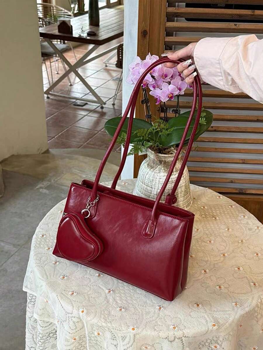 New Spring/Summer Women Shoulder Bag, Fashion Heart-Shaped Armpit Bag, Korean Niche Design, Versatile Mini Square Handbag, Premium Quality Anchor Red Shoulder Handbag Tote Bag