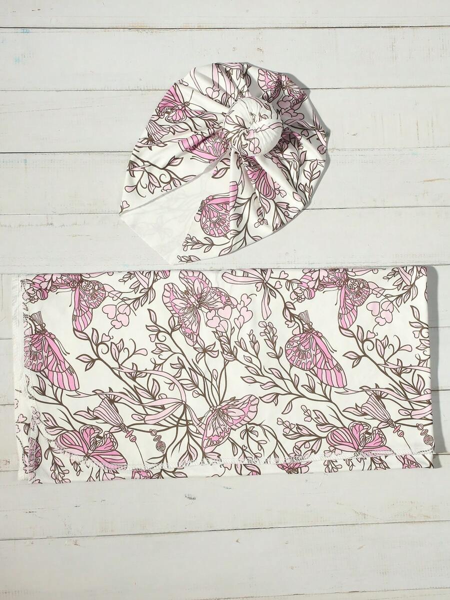 Newborn Baby Floral Printed Headband Photography Set