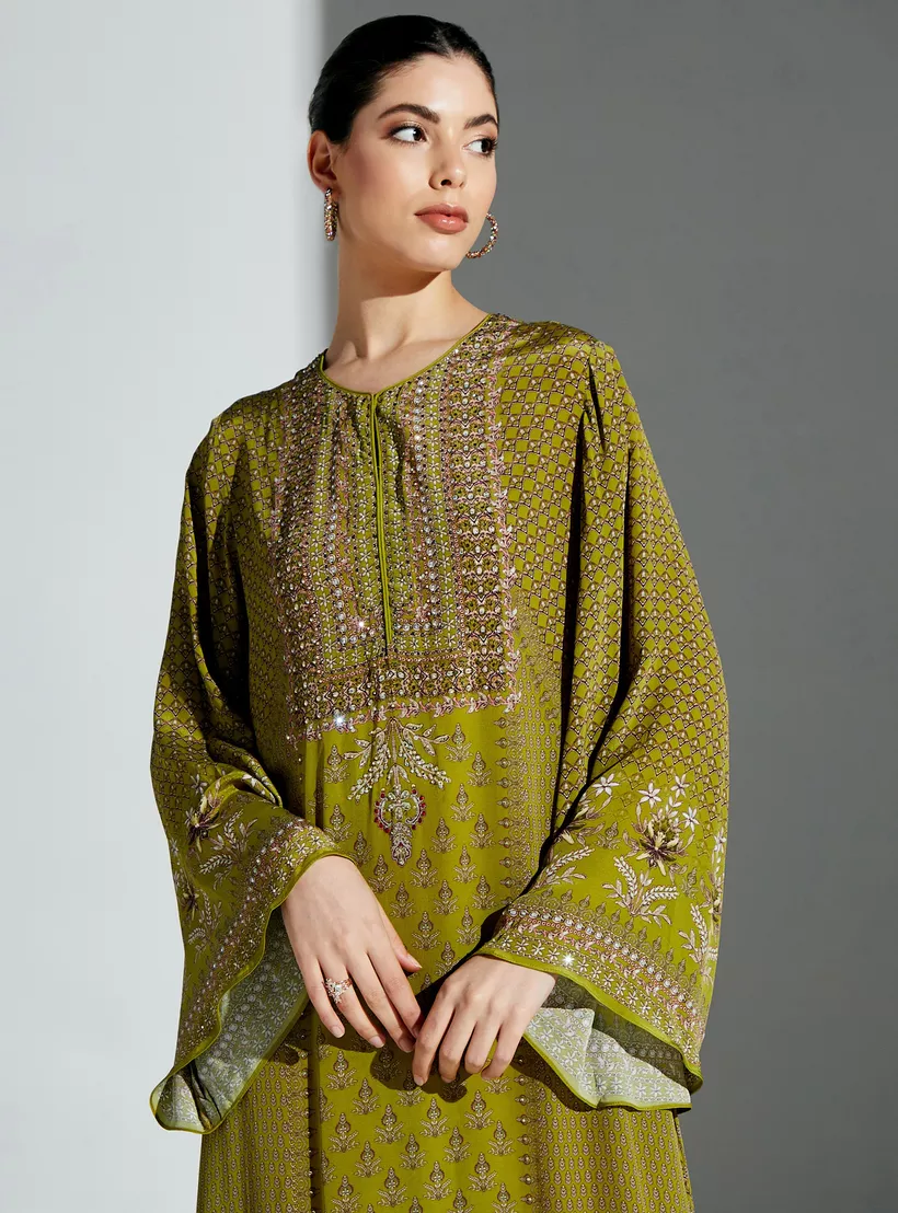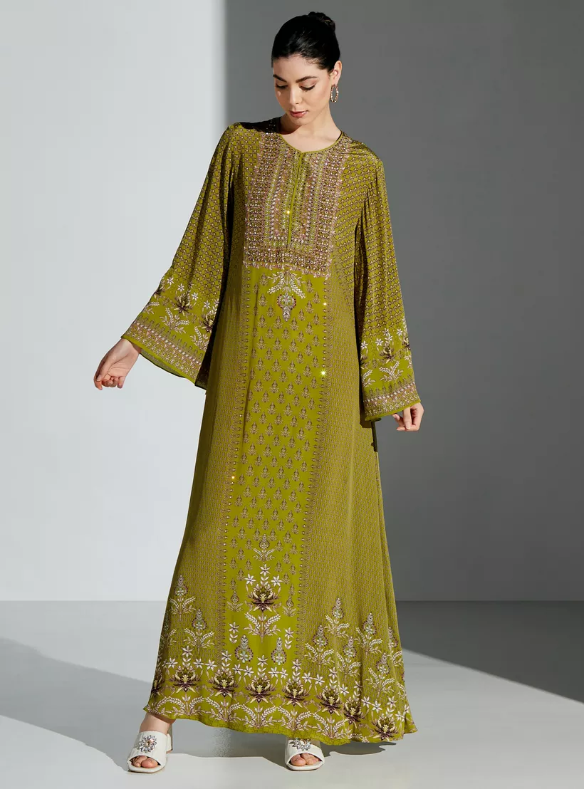 Nirraamyaa All-Over Print Round Neck Kaftan