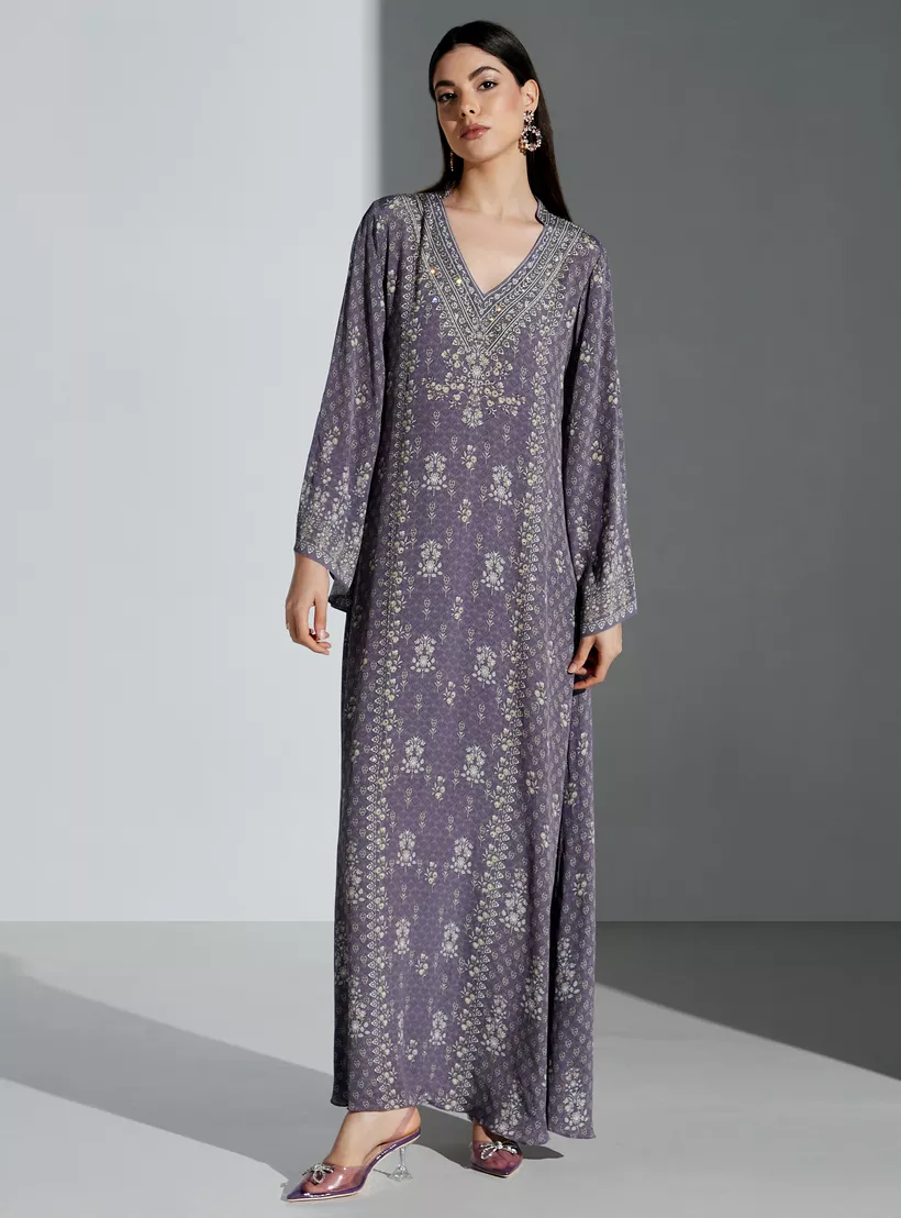 Nirraamyaa All-Over Print V-Neck Kaftan