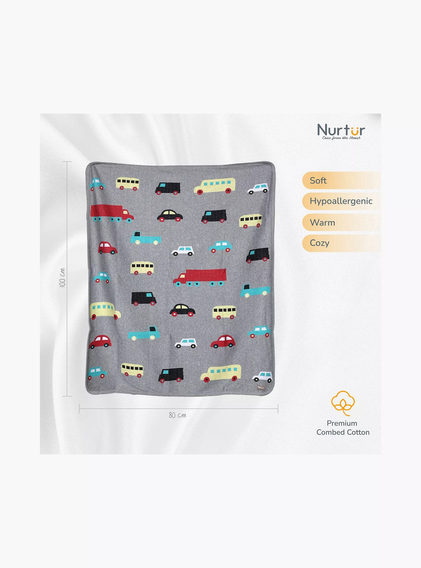 Nurtur 100% Combed Cotton Soft Lightweight Fleece Blanket, 100 x 80 cm, Cars