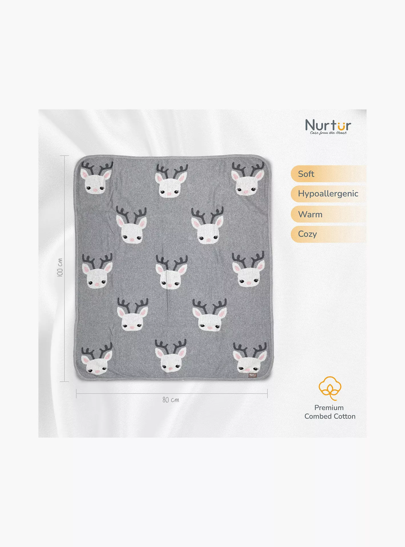 Nurtur 100% Combed Cotton Soft Lightweight Fleece Blanket, 100 x 80 cm, Deer