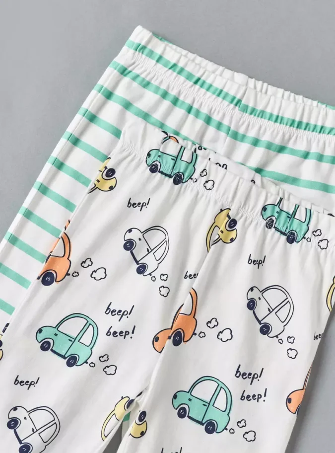 • Fun Printed T-shirts: Each set features a unique, colorful design for playful style.