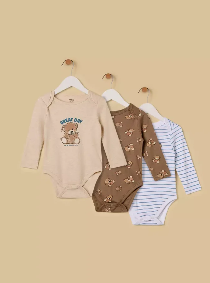 Pack of 3: Three unique bodysuits, each with a different adorable bear-themed print.