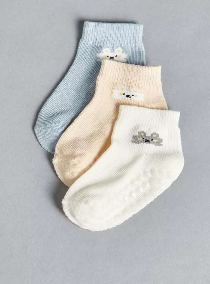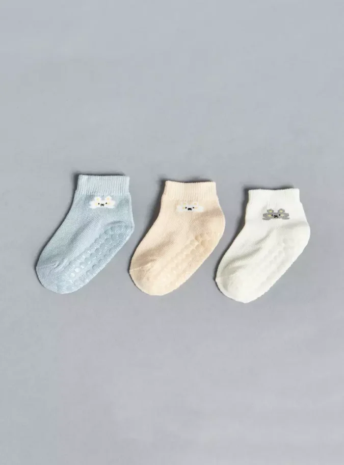 • Set of 3 Printed Socks: Assorted fun patterns like animals, vehicles, or cartoon themes