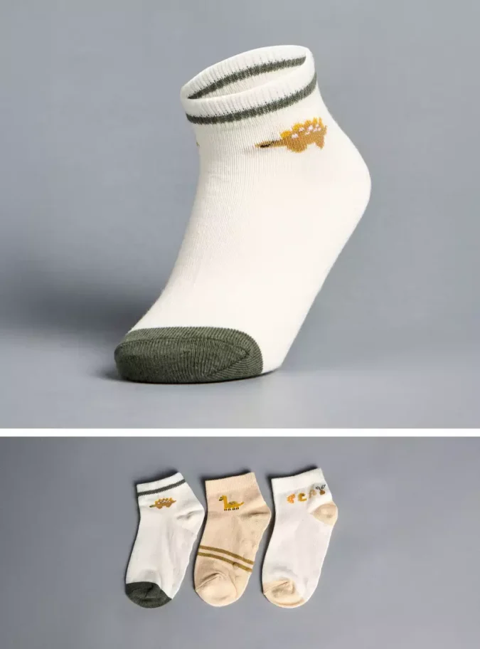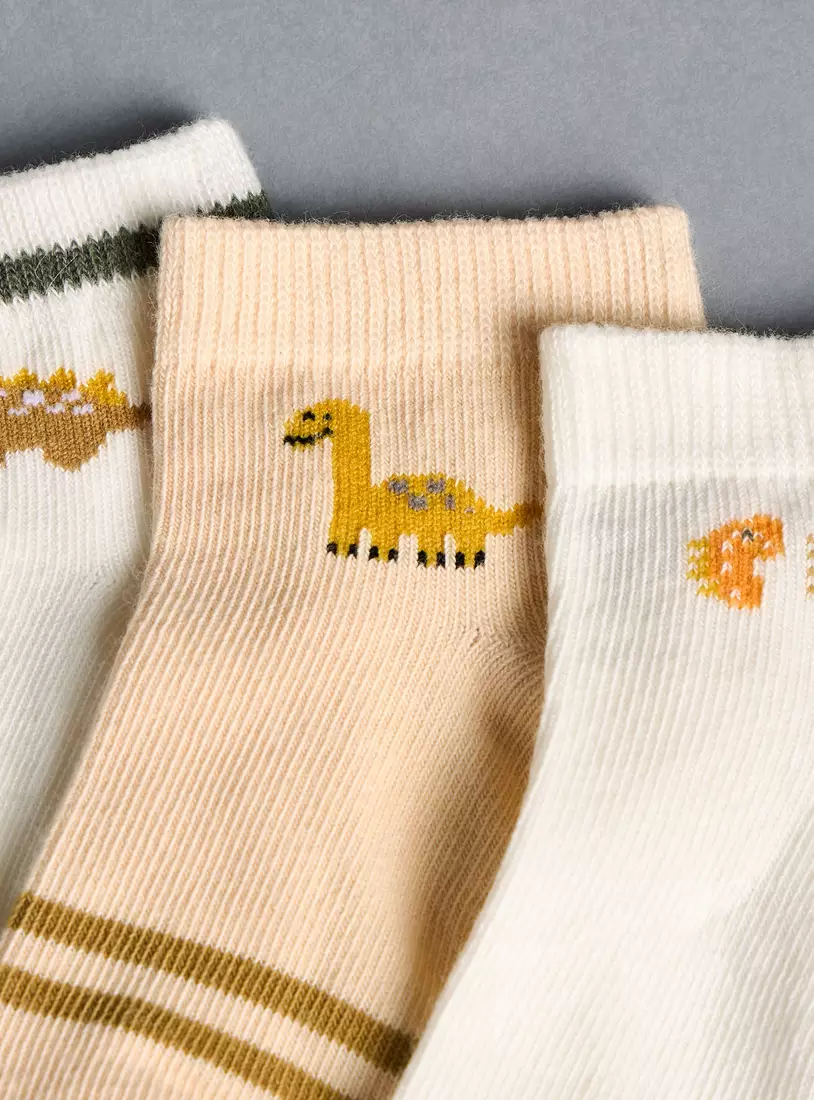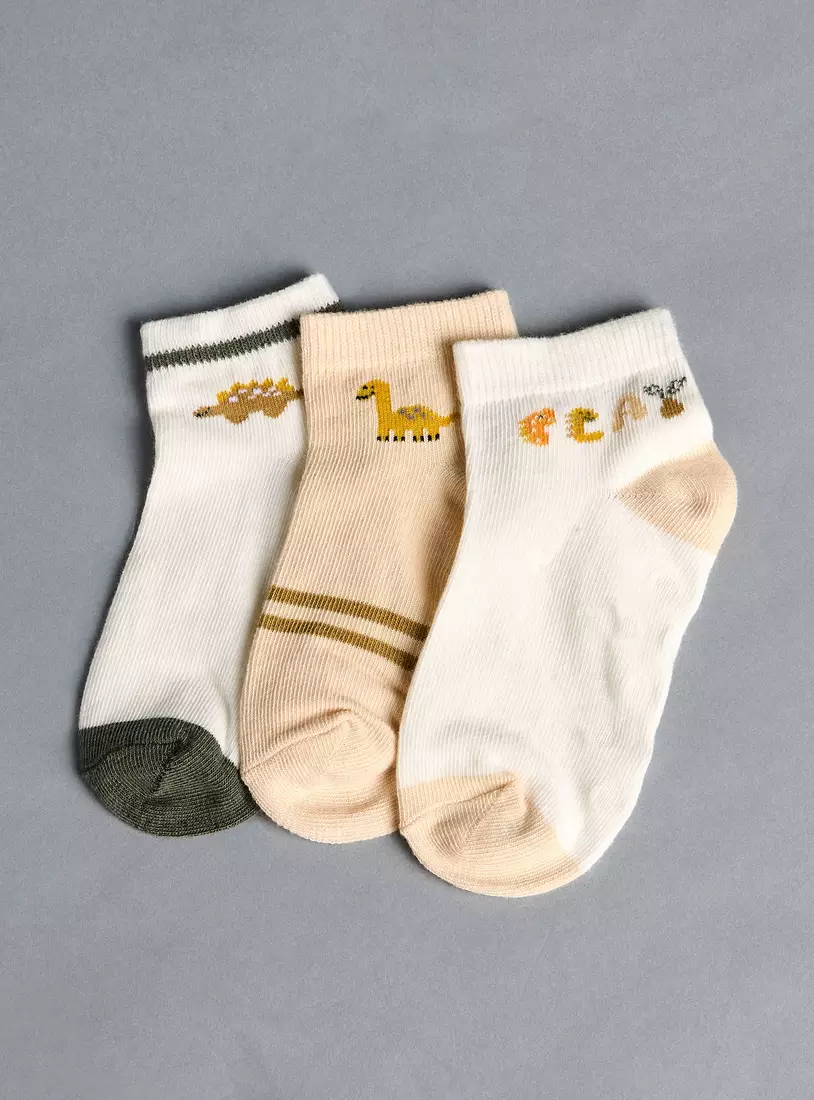 Set of 3 Printed Socks: Assorted fun patterns like animals, vehicles, or cartoon themes