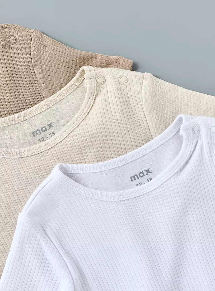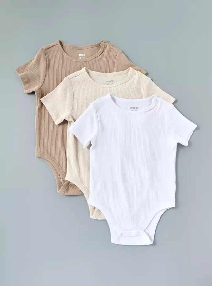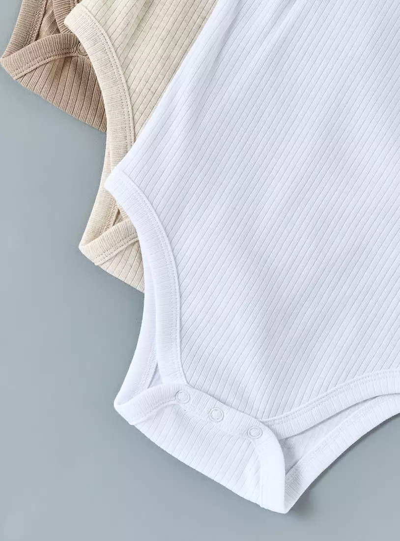 • Set of 3 Bodysuits: Assorted solid colors or subtle patterns for daily variety