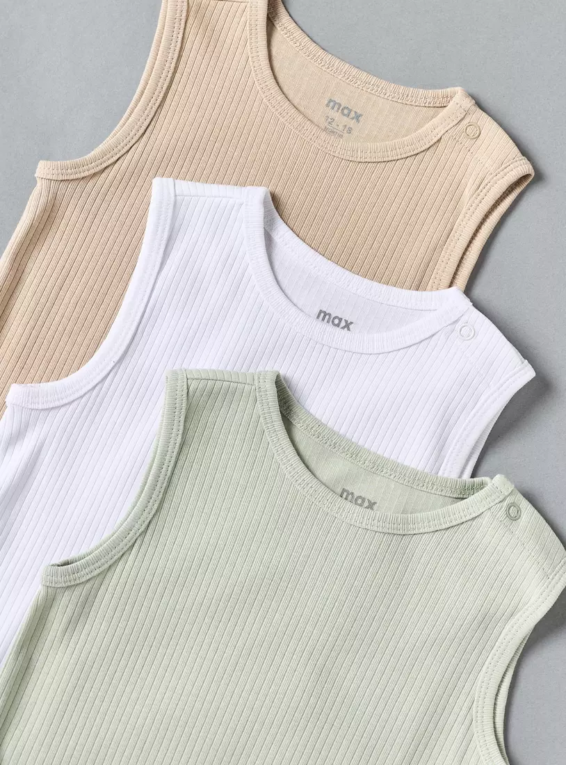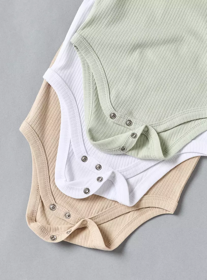Pack of 3 – Ribbed Sleeveless Cotton Bodysuit