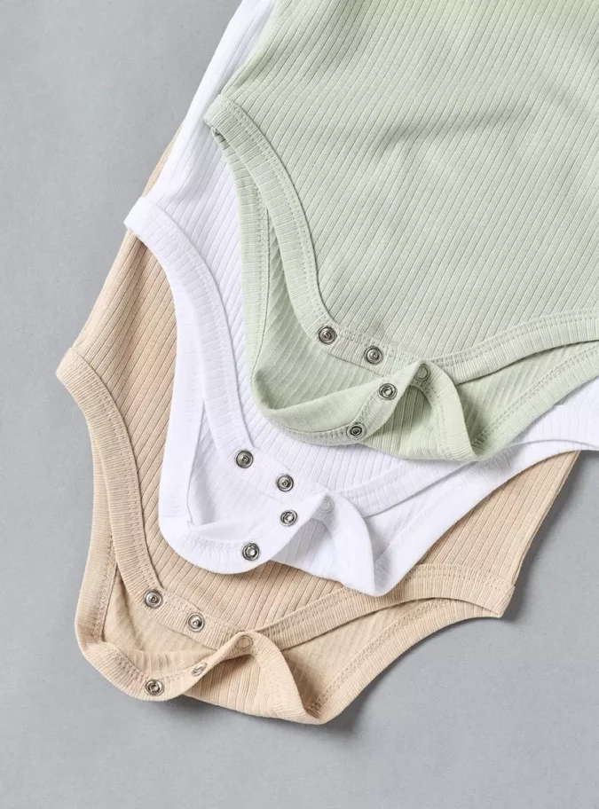 • Set of 3 Bodysuits: Assorted colors in versatile ribbed styling