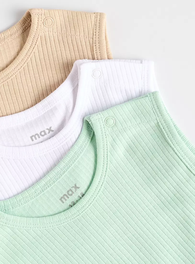Pack of 3 – Ribbed Sleeveless Cotton Bodysuit