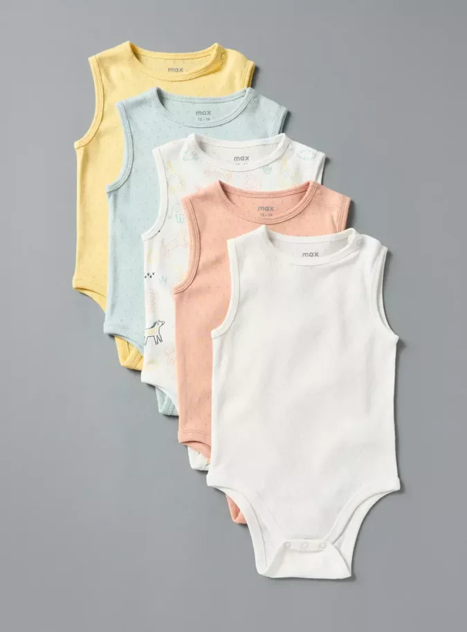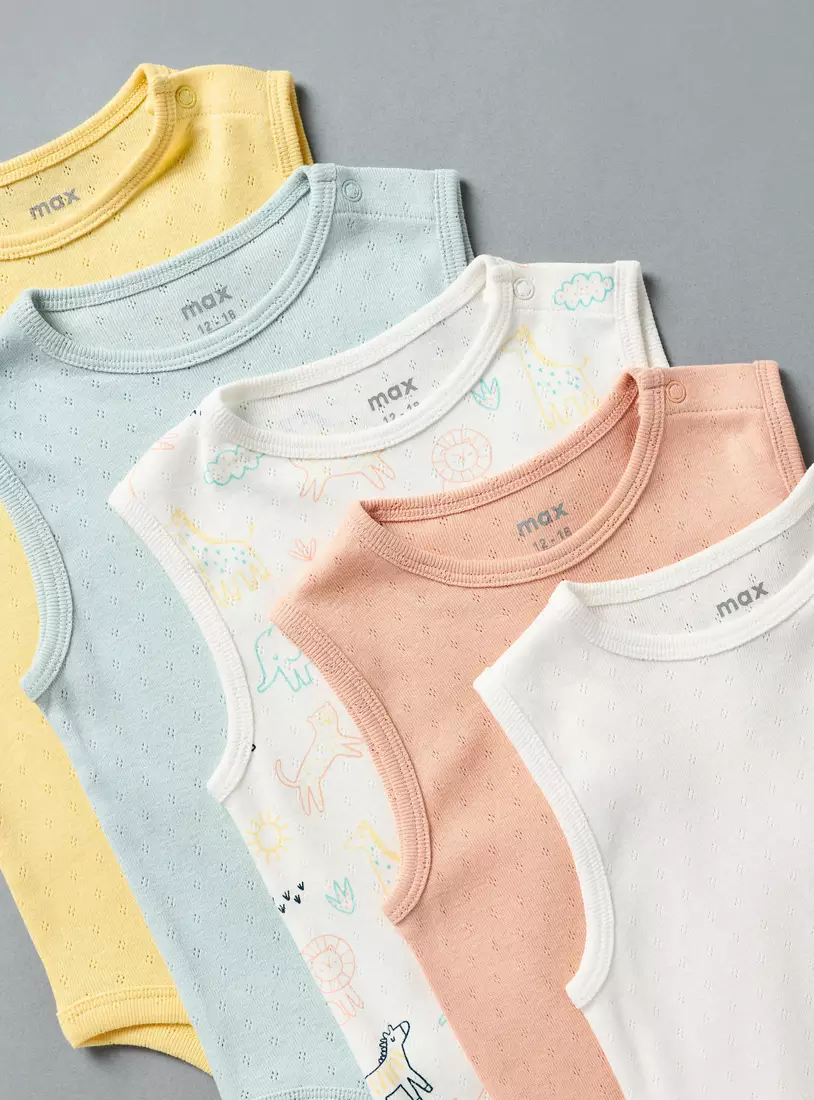 Pack of 5 – Assorted Pointelle Sleeveless Cotton Bodysuit