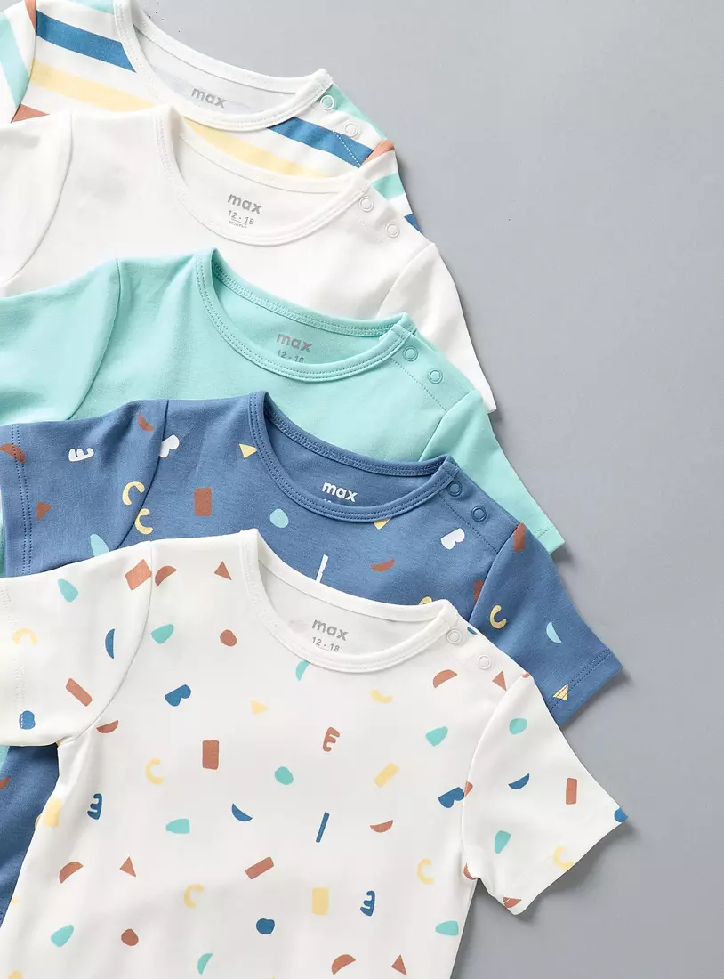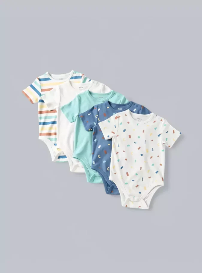 Set of 5 Bodysuits: Fun mix of prints like animals, shapes, or playful phrases