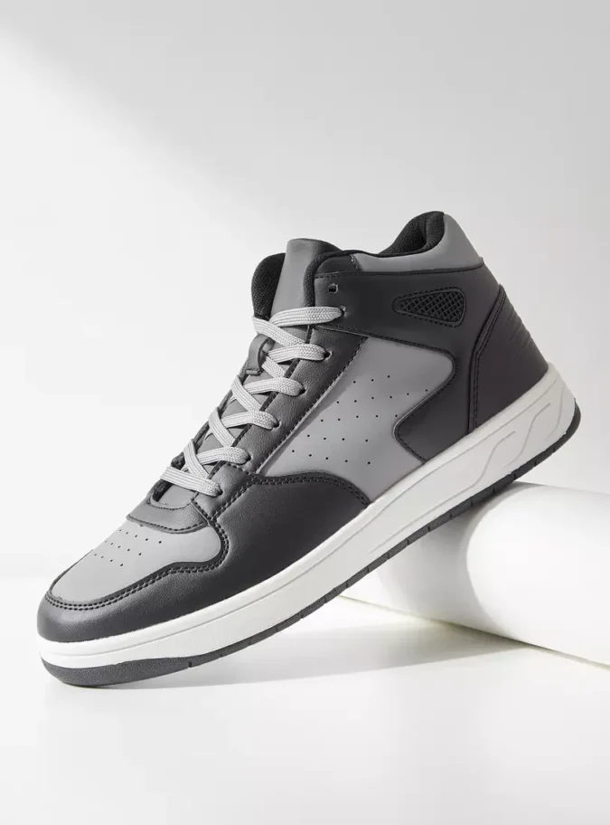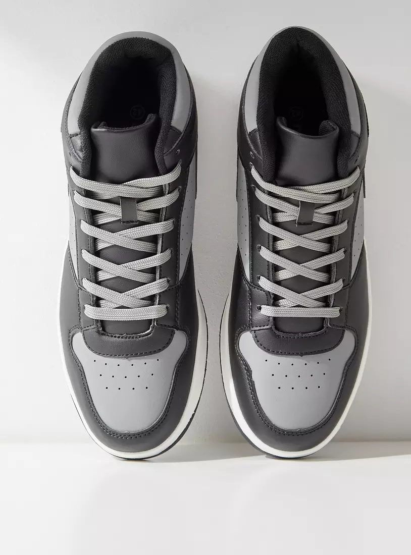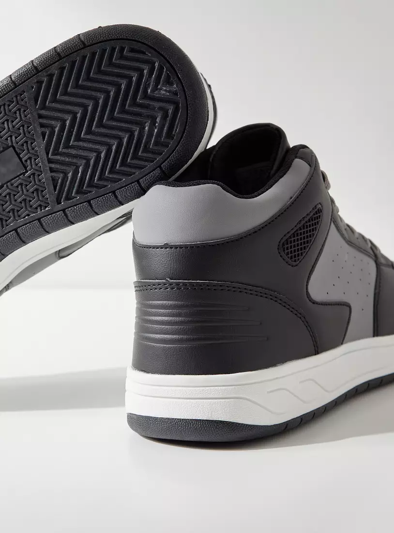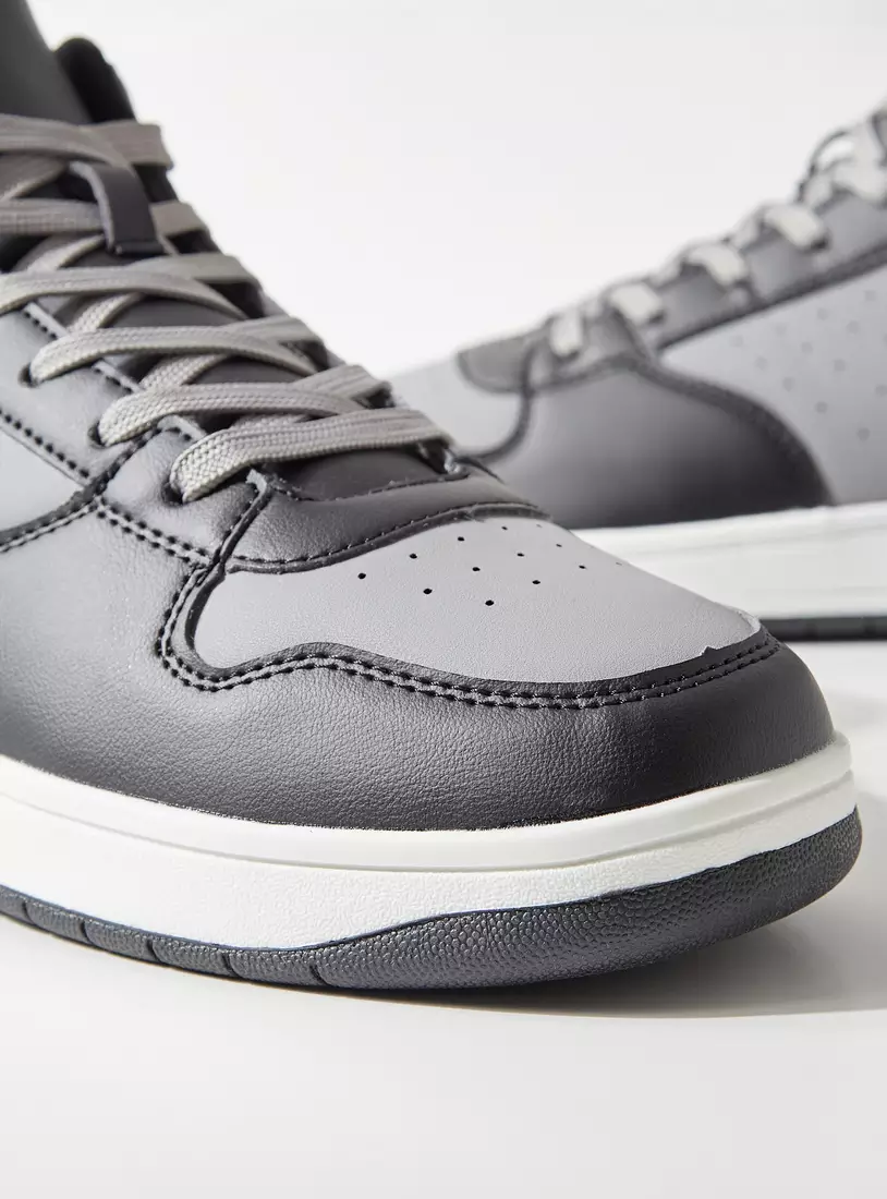 Panelled Hi-Top Sneakers with Lace-Up Closure
