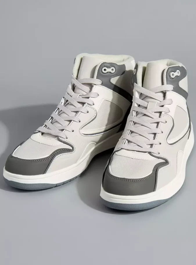 Contrasting Panel Design: Strategic panels of mixed materials, colors and textures create visual depth and a modern, architectural aesthetic that stands out from basic sneakers.