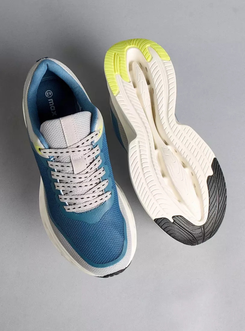 Panelled Sports Shoes with Lace-Up Closure