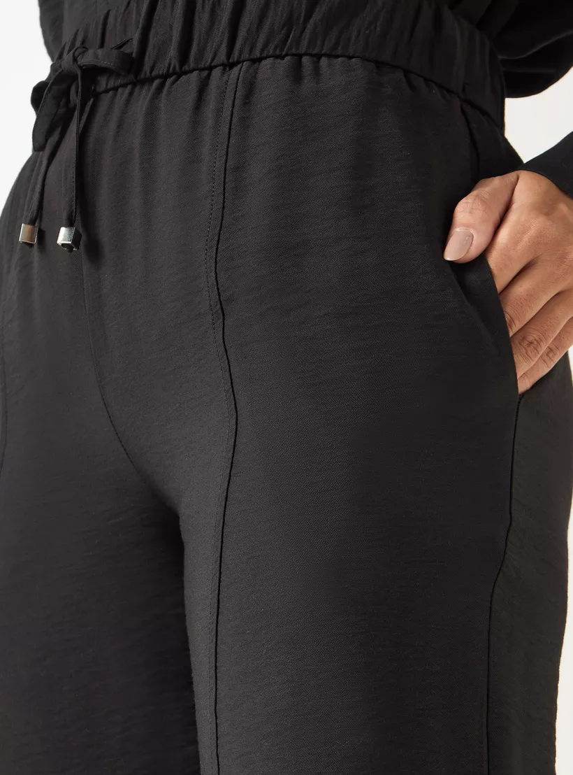 Panelled Wide Leg Pants with Drawstring Closure and Pockets